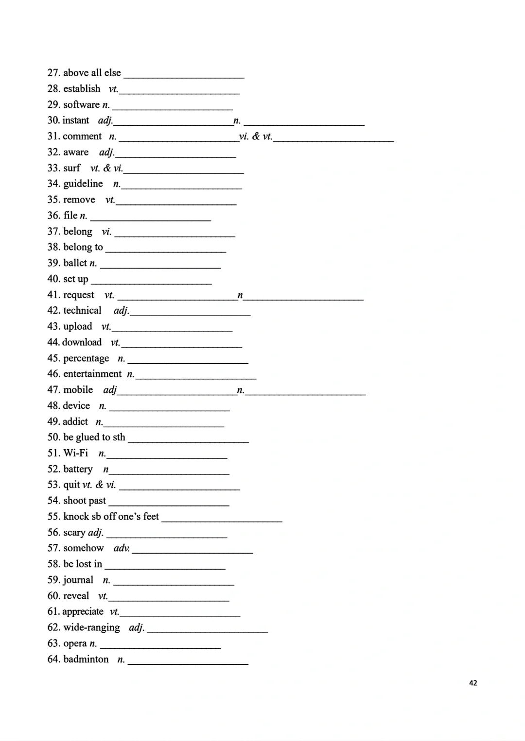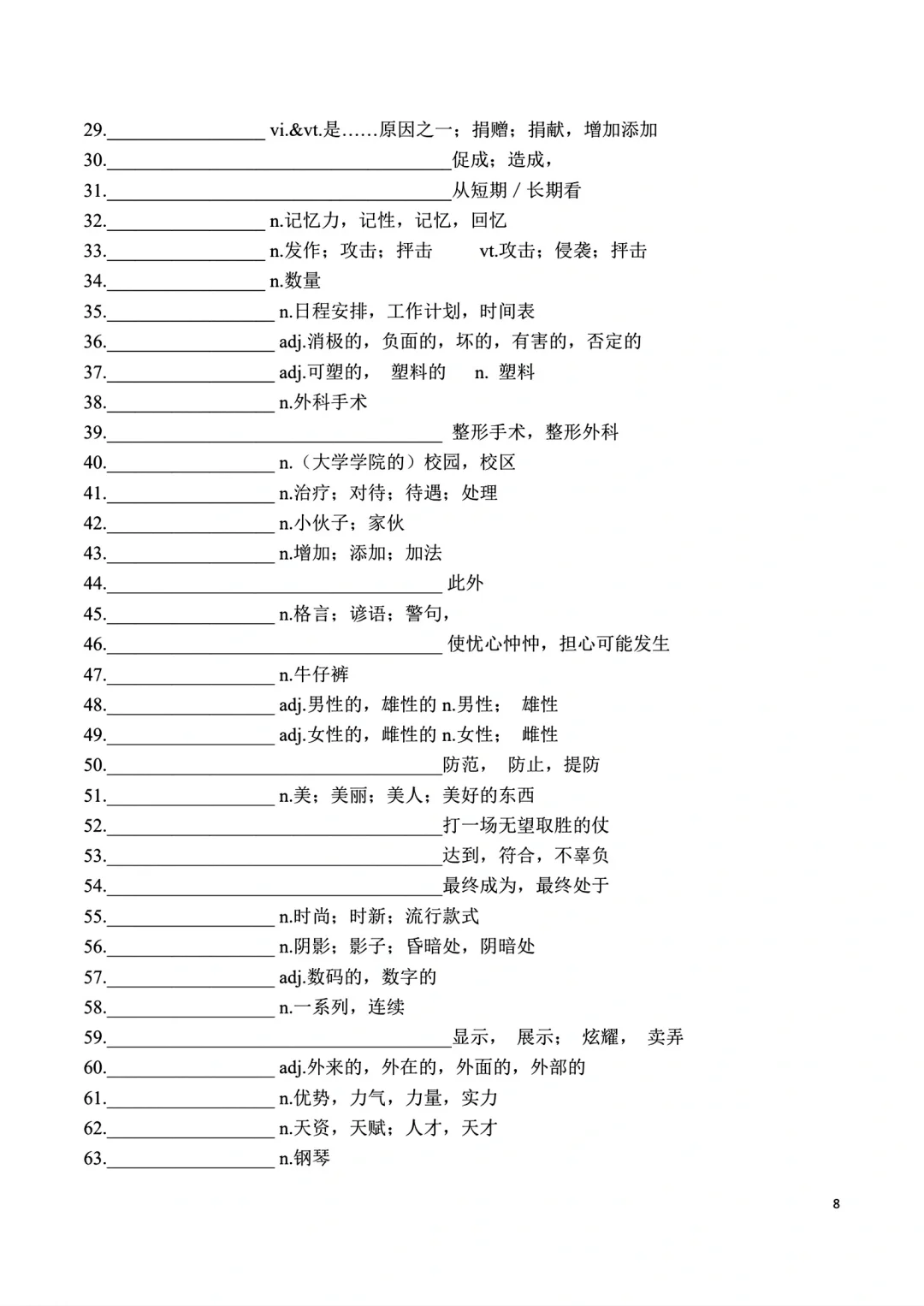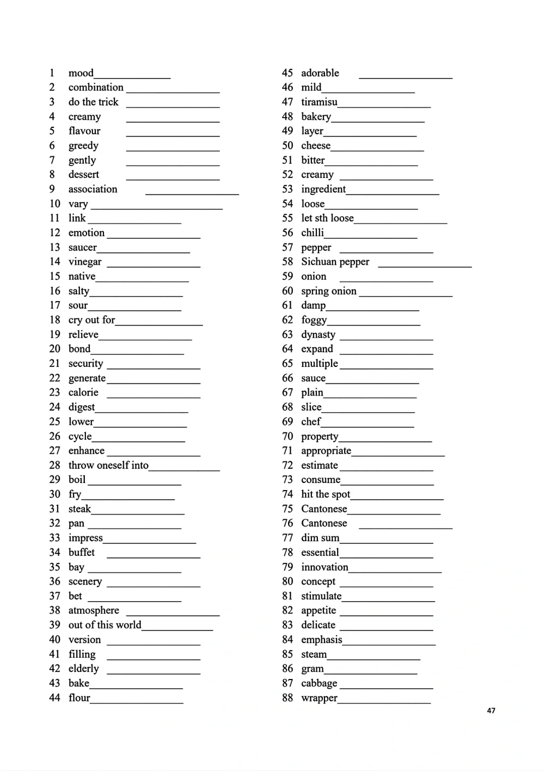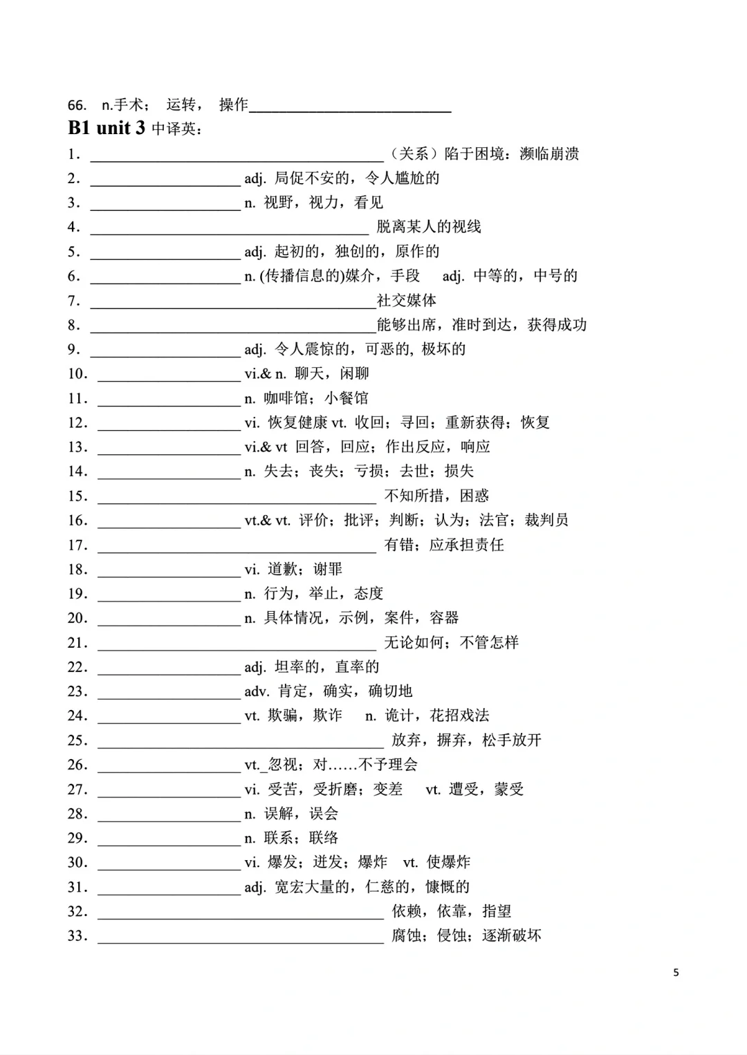 高一上册英语词汇自主默写表