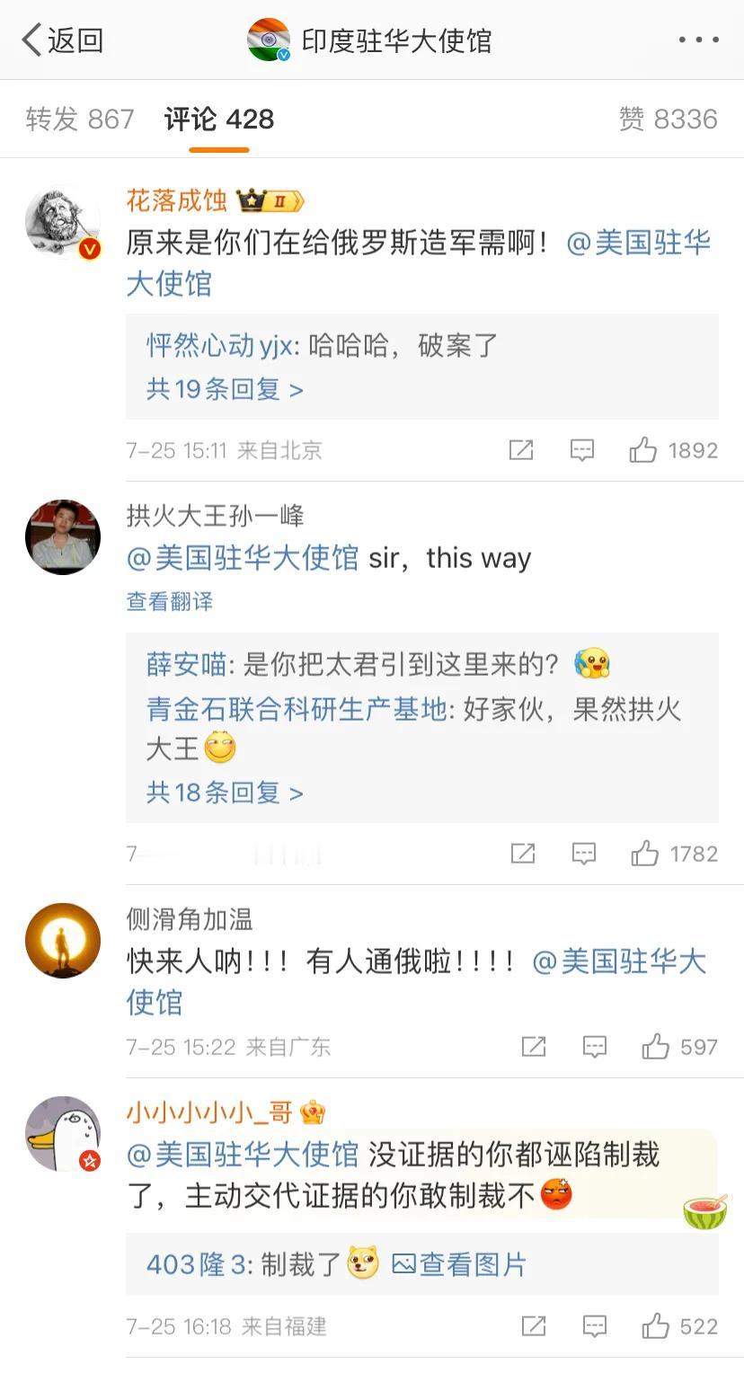 印度驻华大使馆微博发文吹嘘,“比哈尔制造”靴子现在已成为俄罗斯军队装备的一部分,展示了印度产品出人意料的全球影响力。很多中国网民在评论区@美国驻华大使馆 ,检举揭发印度向俄罗斯提供军队装备。