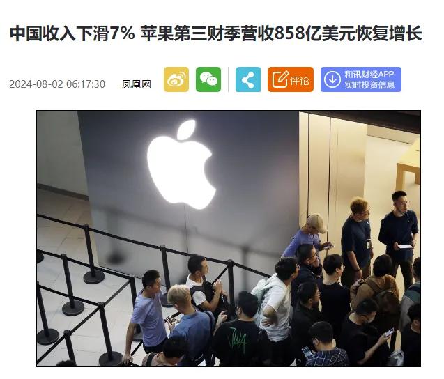 谁都没想到,苹果居然也有今天。近日苹果发布了最新季度财报,今年2季度,苹果全球营收达到857亿,同比增长5%,但令人意外的是,在大中华区苹果营收仅147亿,出现了近7%的下滑。