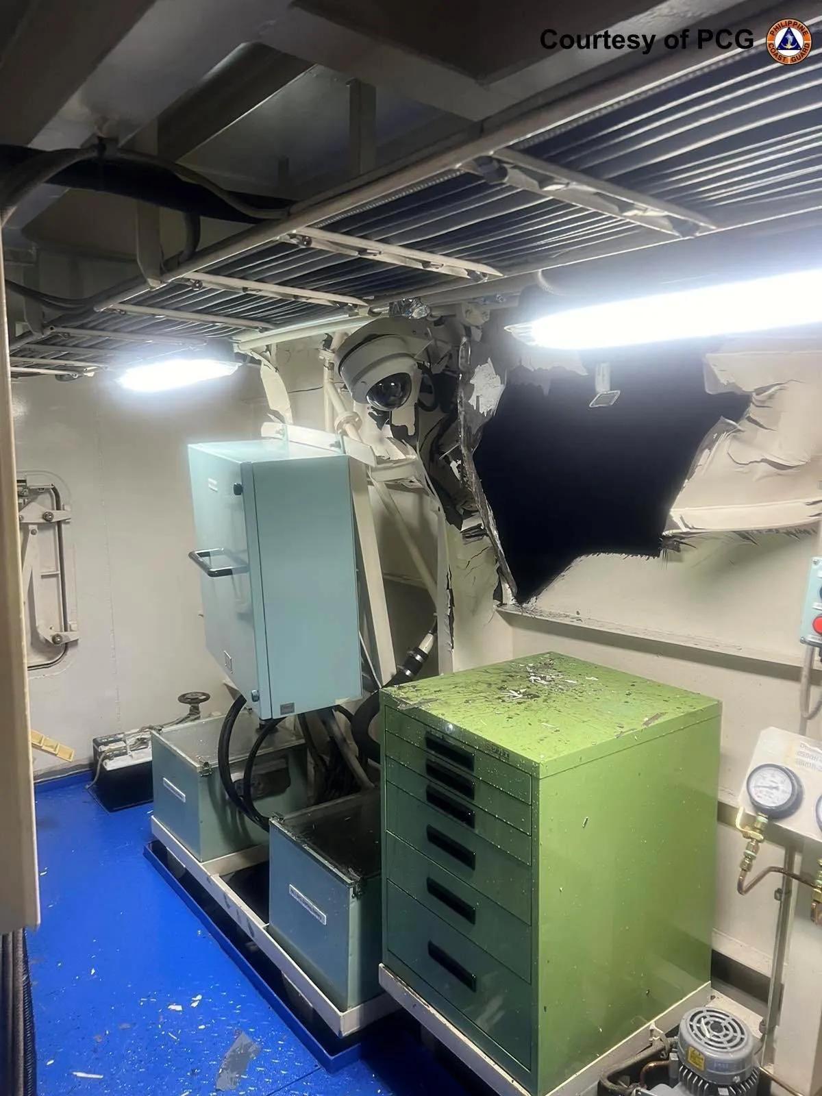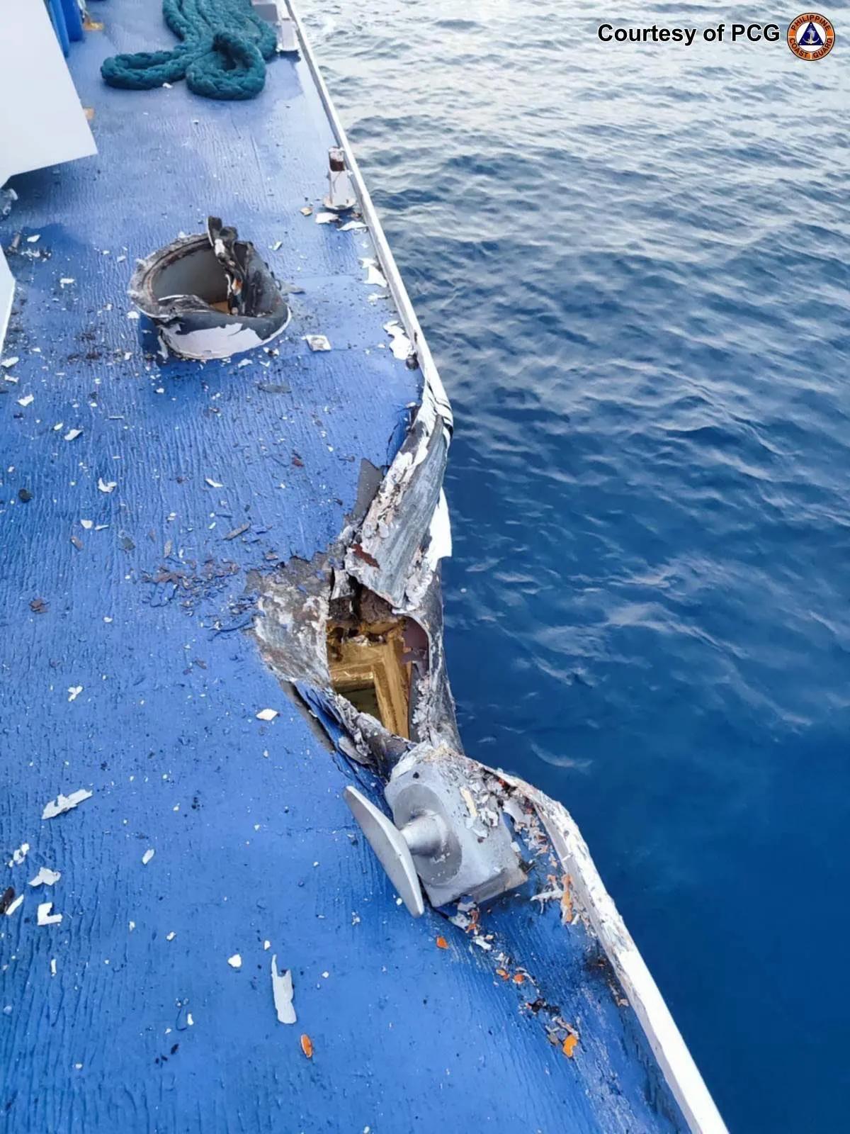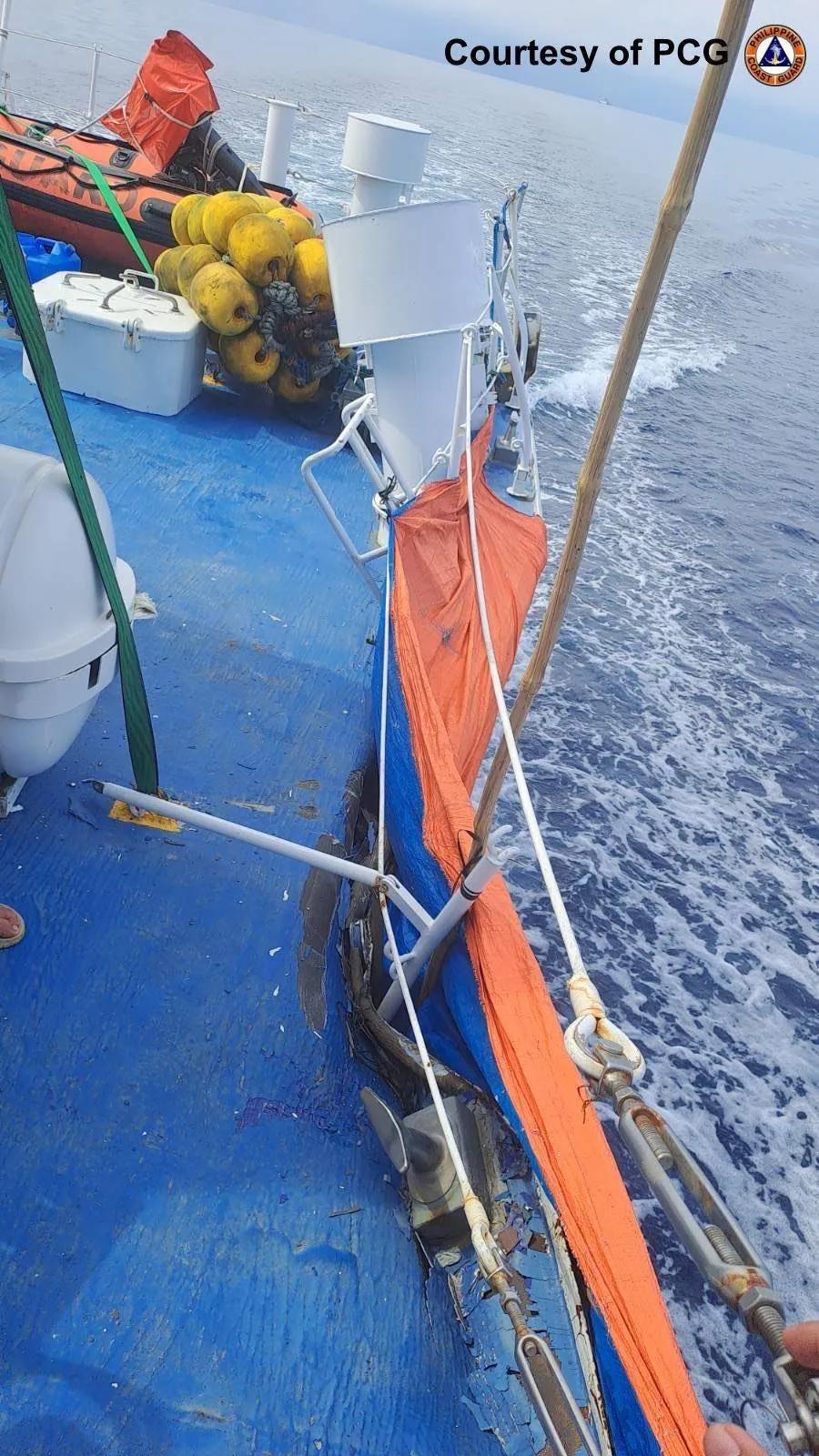 在中国海警局新闻发言人就菲海警船故意冲撞我海警舰艇发表声明后,菲律宾方面也发布了声明,并公布了多张照片。菲律宾海岸警卫队发言人倒打一耙,指责“中国海警船危险非法操作,并与菲律宾海警船发生碰撞”。菲律宾海岸警卫队发言人指出,菲律宾4411号海警船“在甲板上形成一个直径约 5 英寸的洞”。菲律宾4410号海警船“左舷和右舷被撞击后,导致结构轻微损坏”。