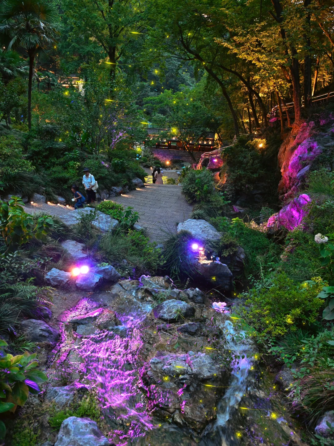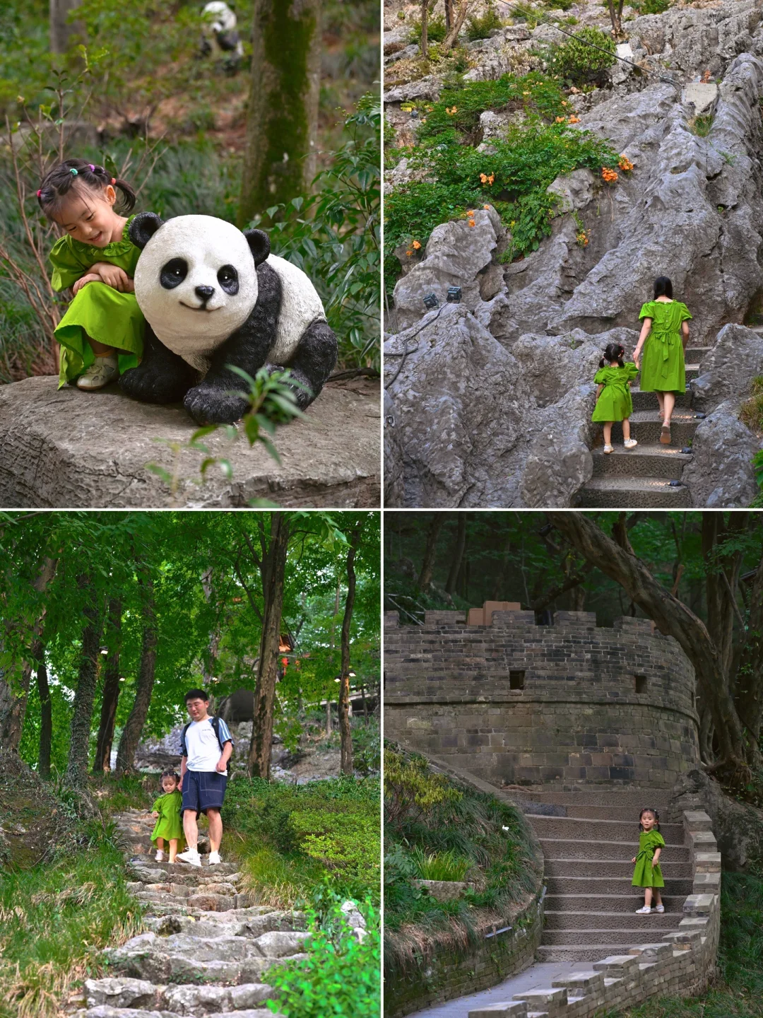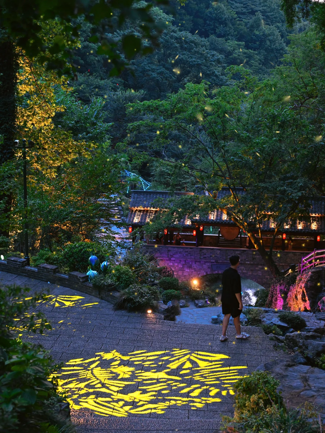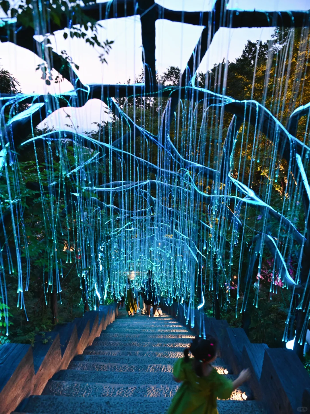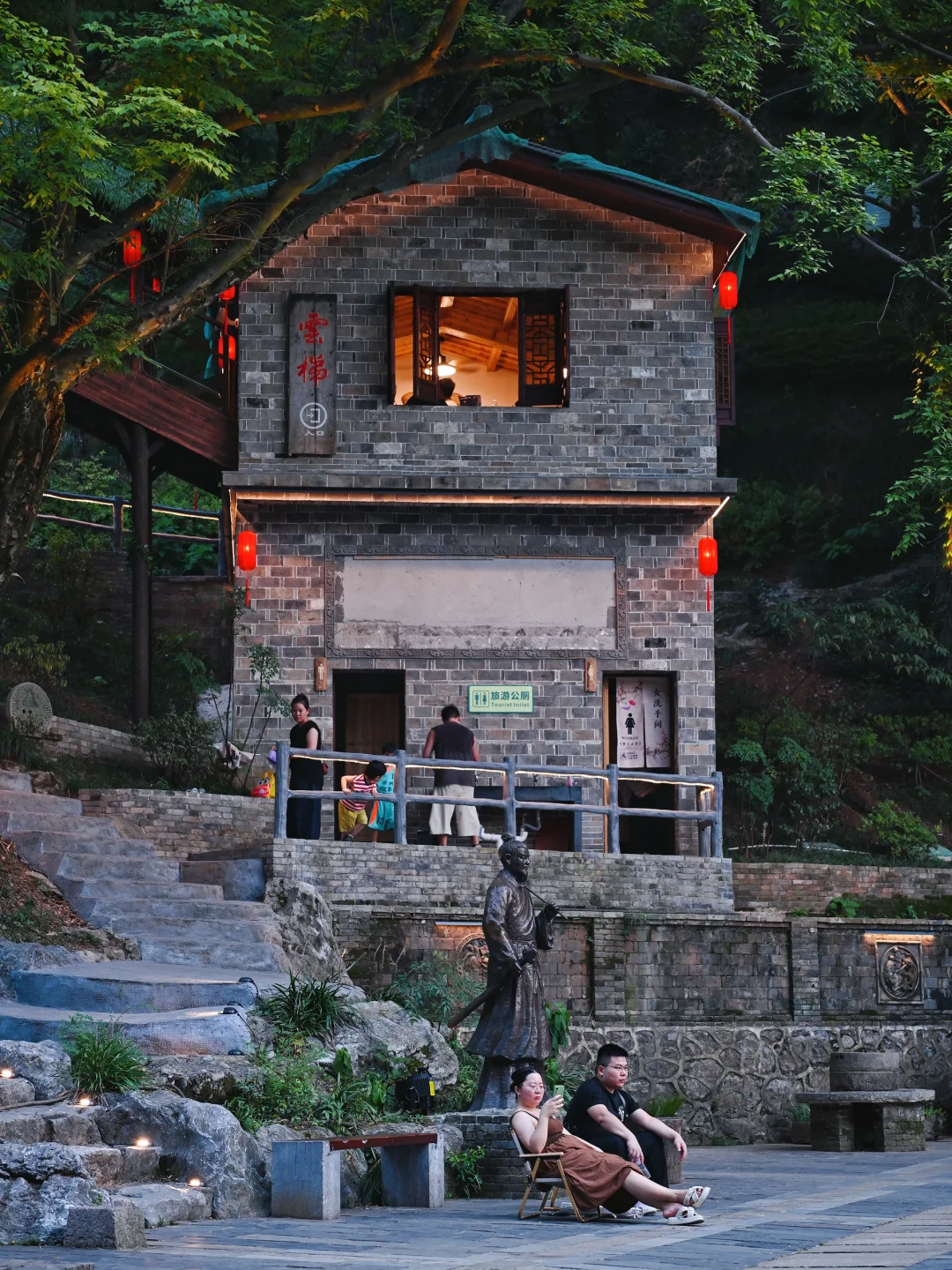 我们是傍晚17点去的忆江南,这样下山的时候刚好亮灯,又是另一种意境!!白天的风景跟夜间完全不同,虽然温度高,但是全程都是树荫完全不晒!上山可以坐2段云梯,下山可以坐玻璃滑道下来(17:40结束),不过也是要爬山的哦,要穿舒适的鞋子