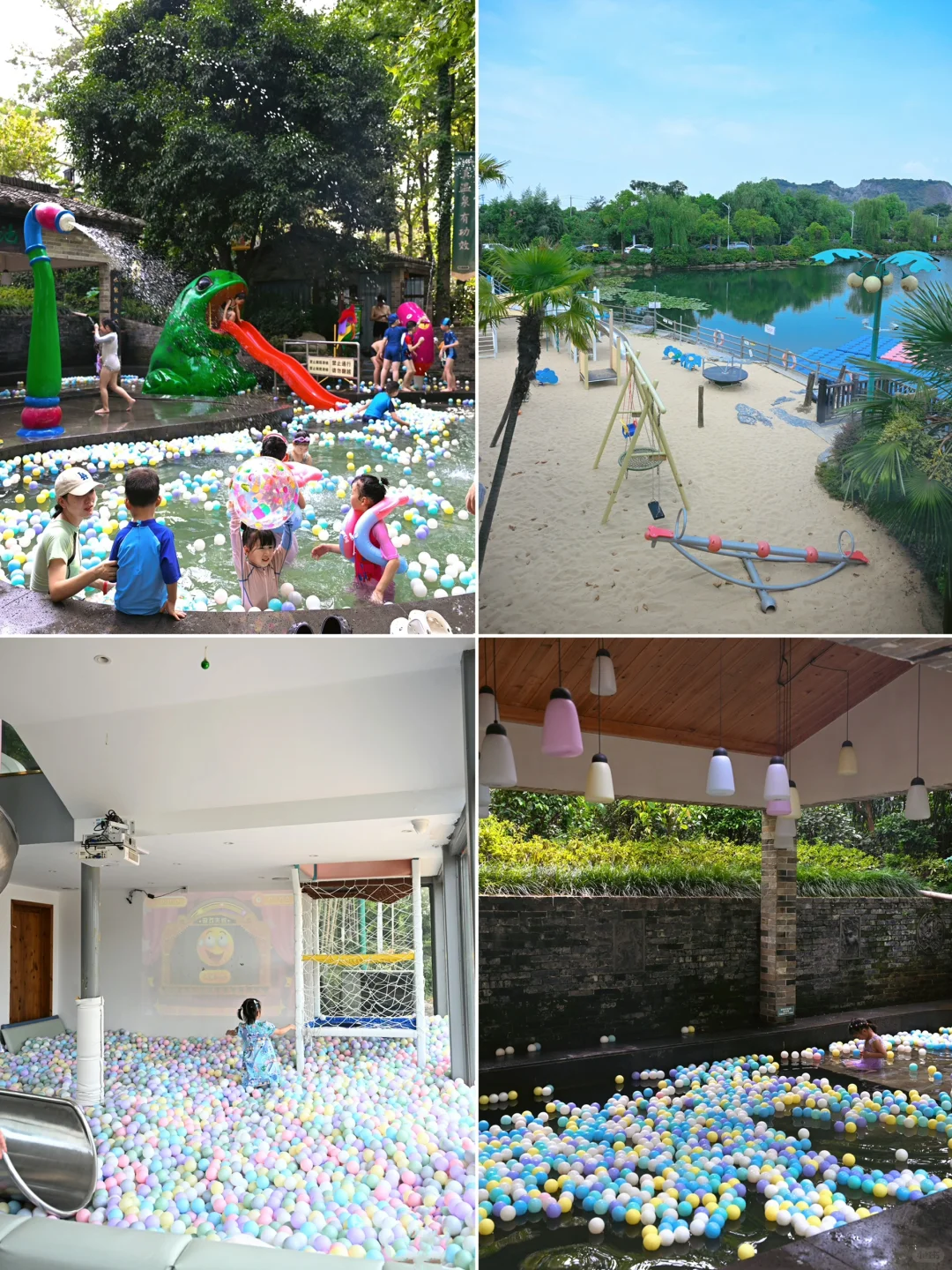 在景区门口,有室内和室外,室内可以玩滑滑梯、海洋球池,室外有大滑梯和沙子秋千等