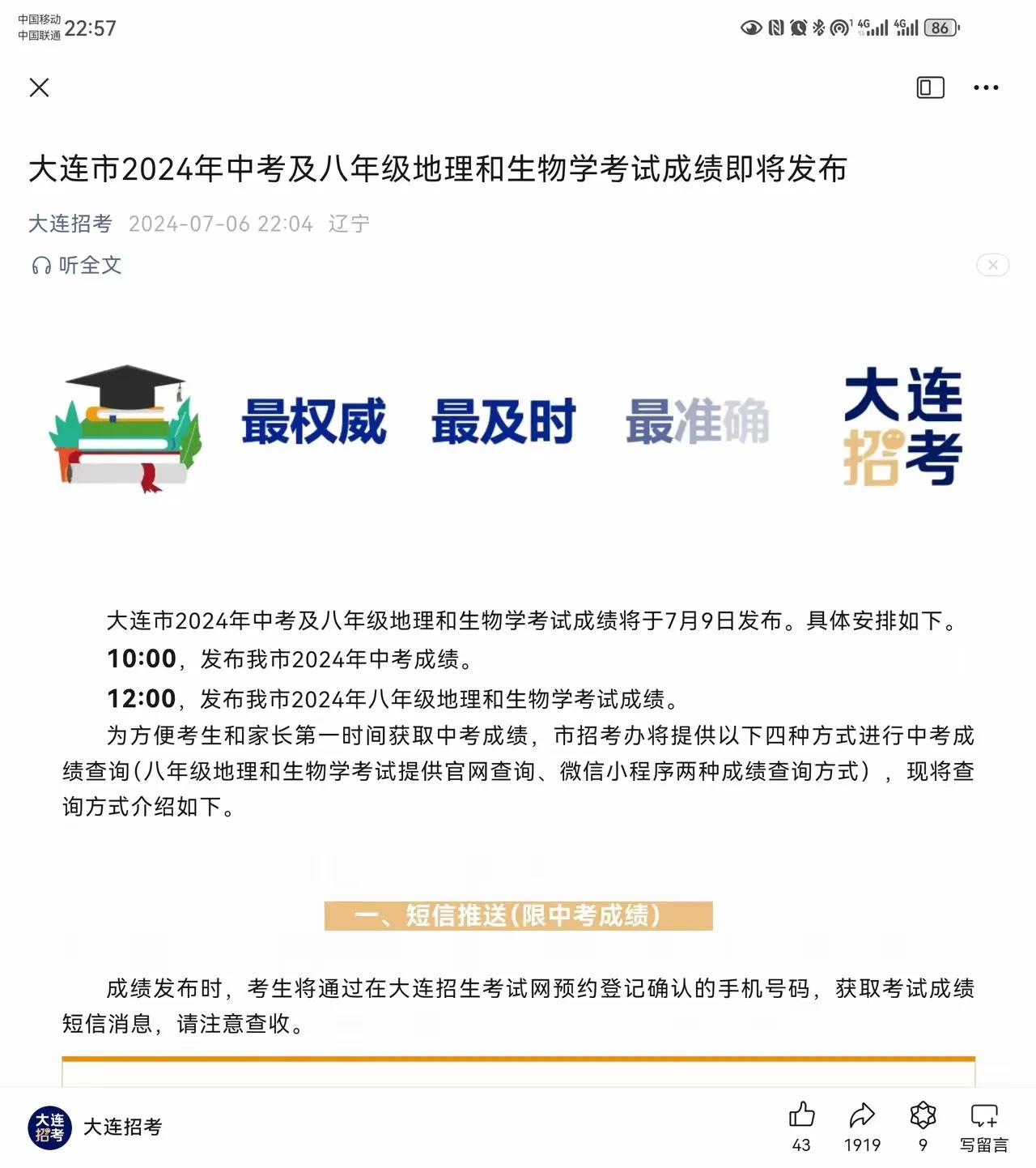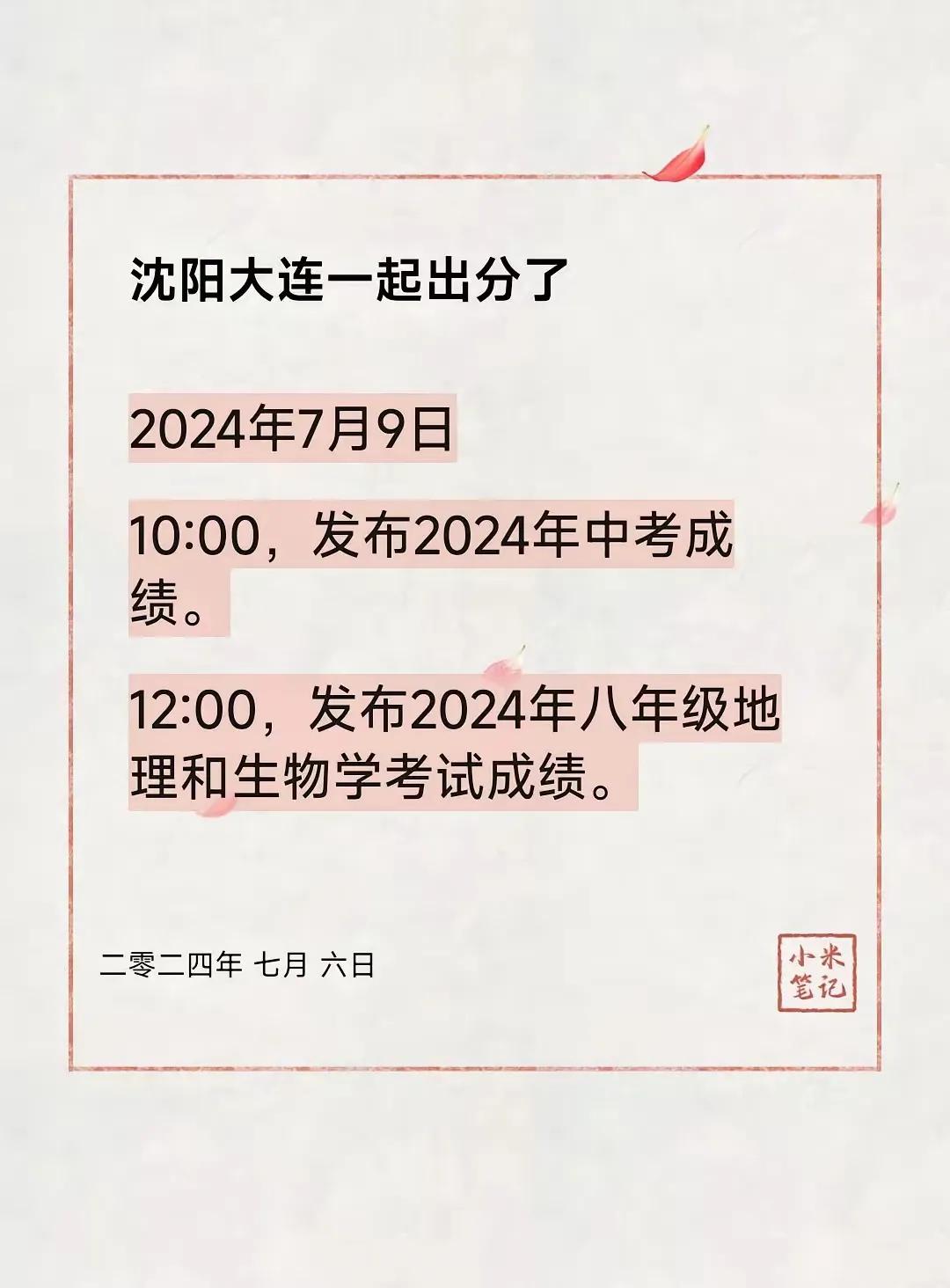 在其他城市陆续发布中考成绩之后 沈阳大连终于还是没沉住气 比原先计划提前一天 公
