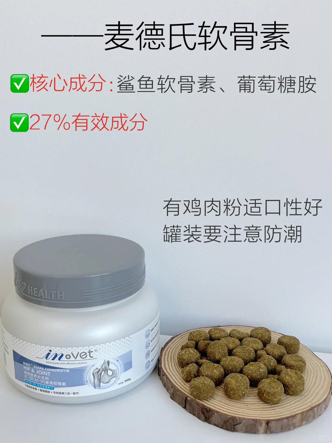 👉喂食反馈:我家当作小零食吃的一款软骨素,对🦴有效成分含量是27%,是软颗粒的,适口性还比较不错,很大一罐要注意储存。