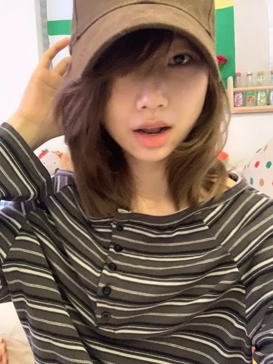 完蛋的发型只能靠帽子🧢盖一下了[微笑R]