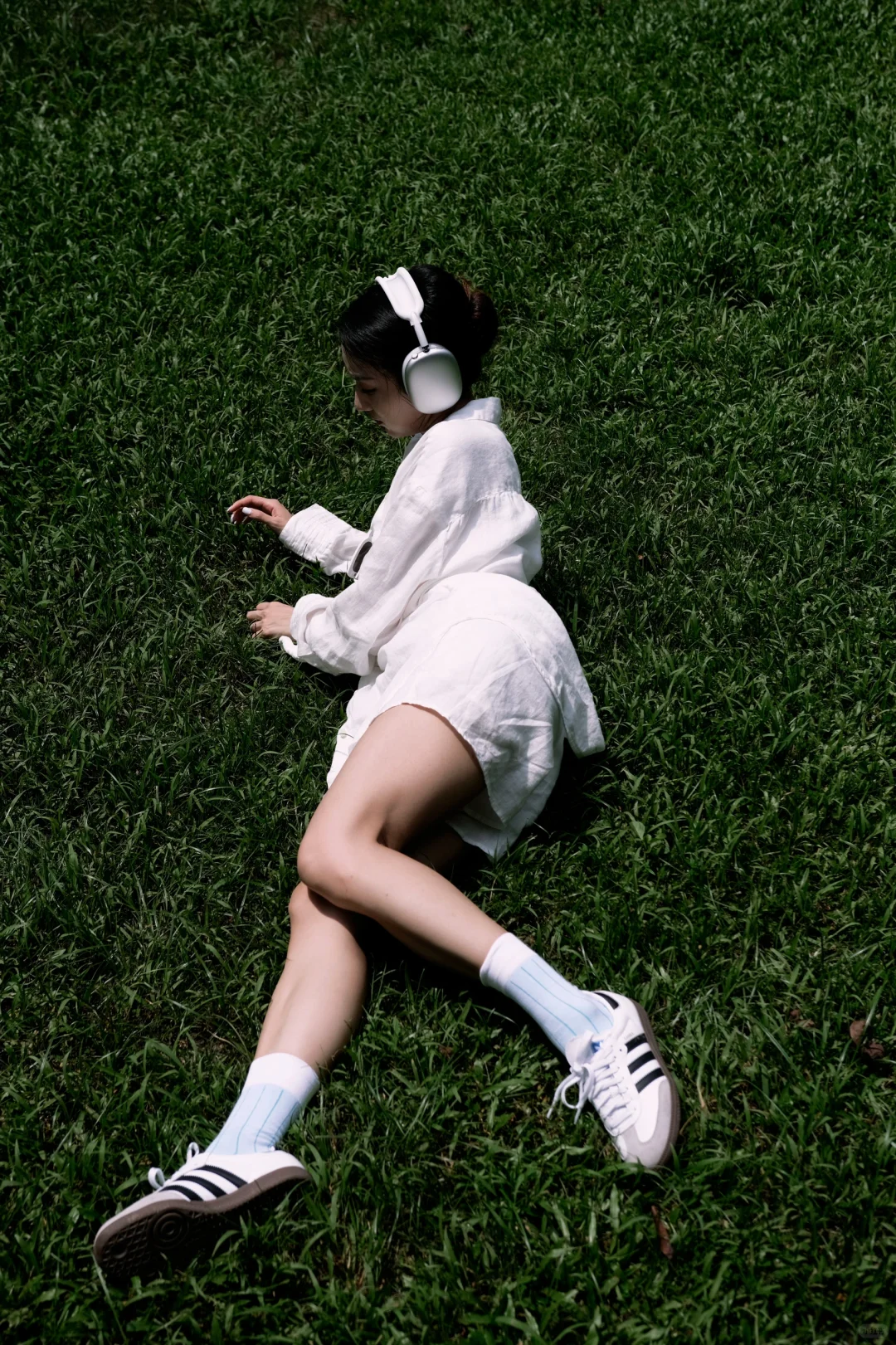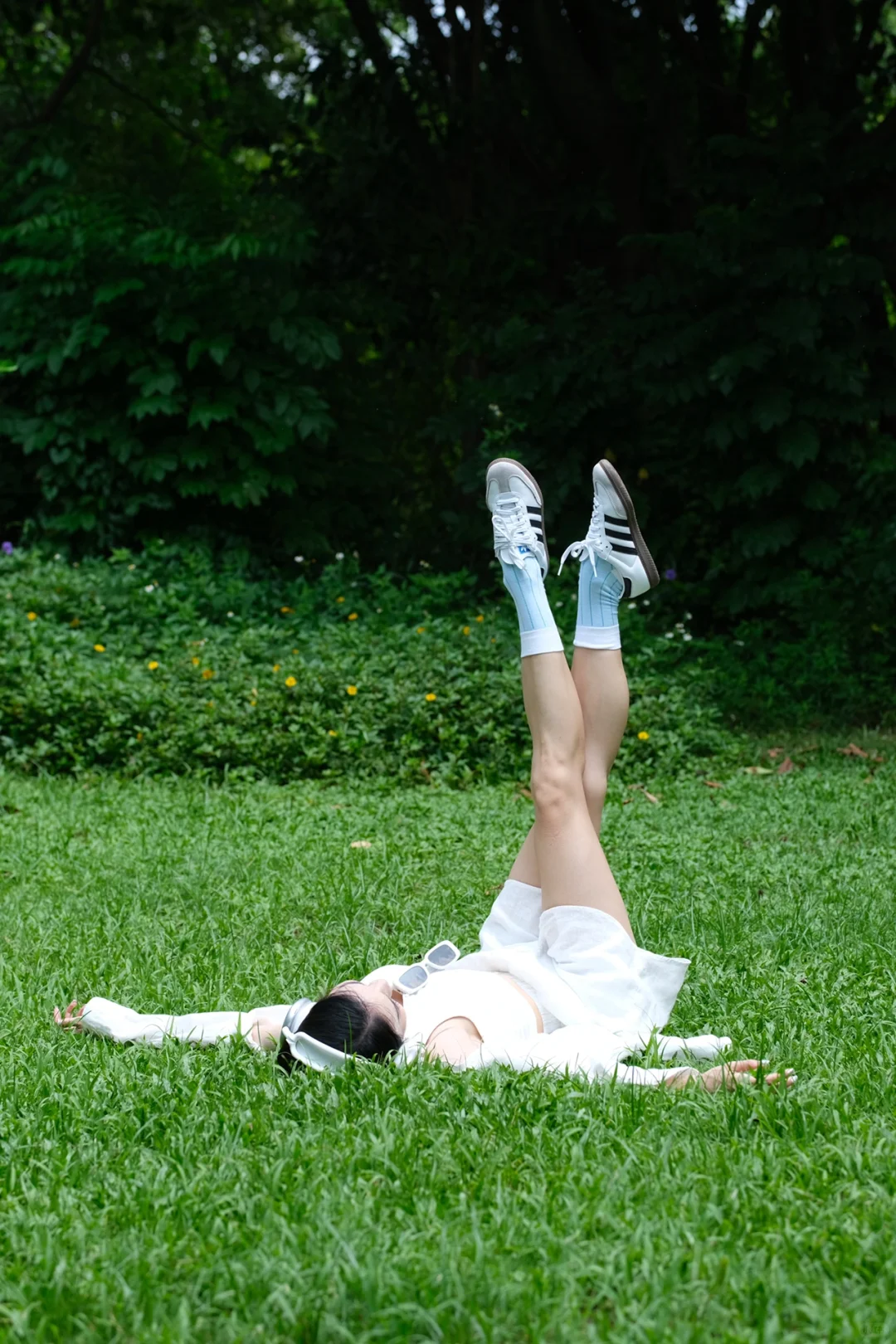 白色衬衫搭配休闲裤,再加上运动鞋和✨FIVEFLUX午花经典双色条纹袜🧦🤩一身搭配全靠多巴胺色系的