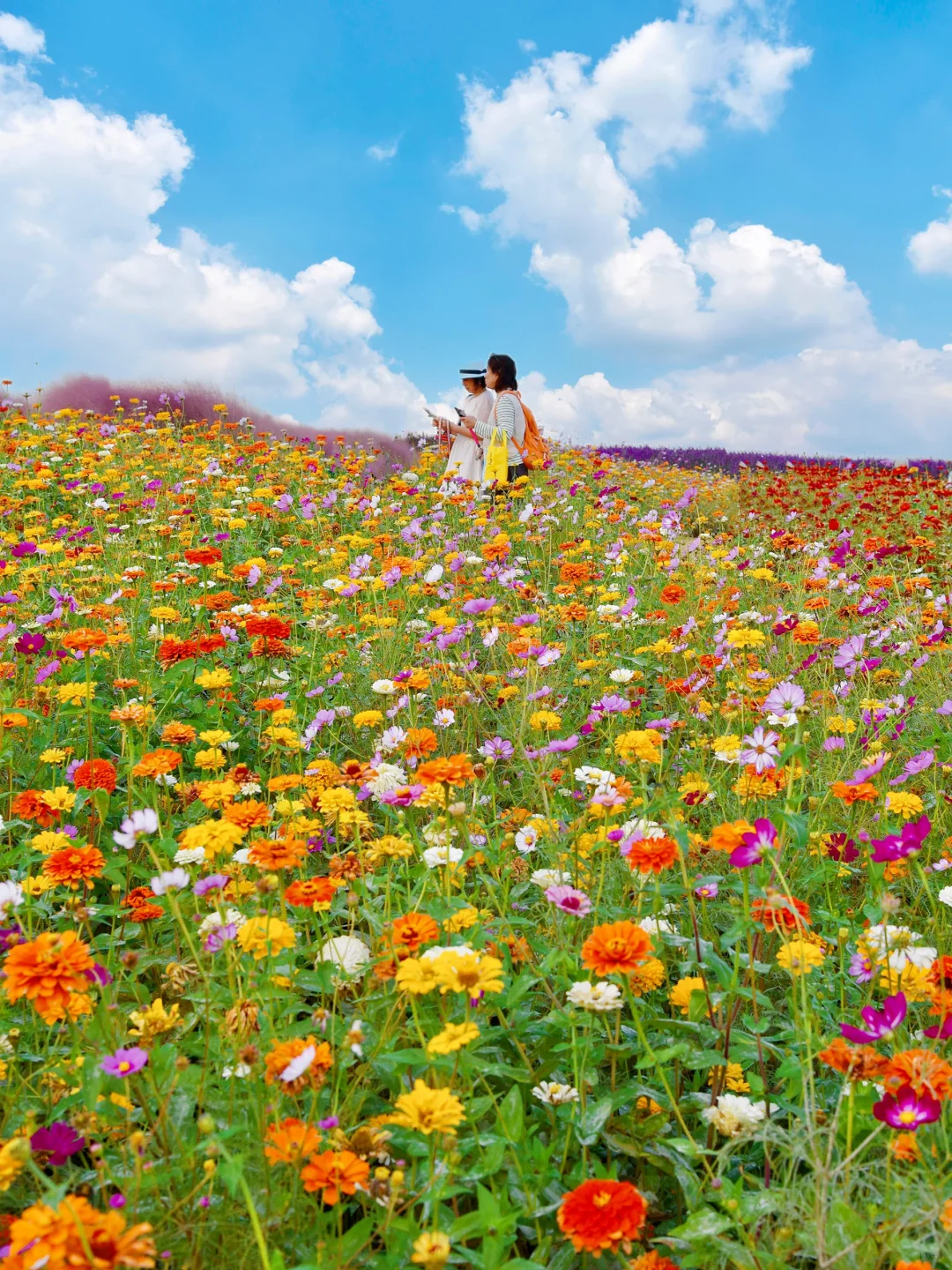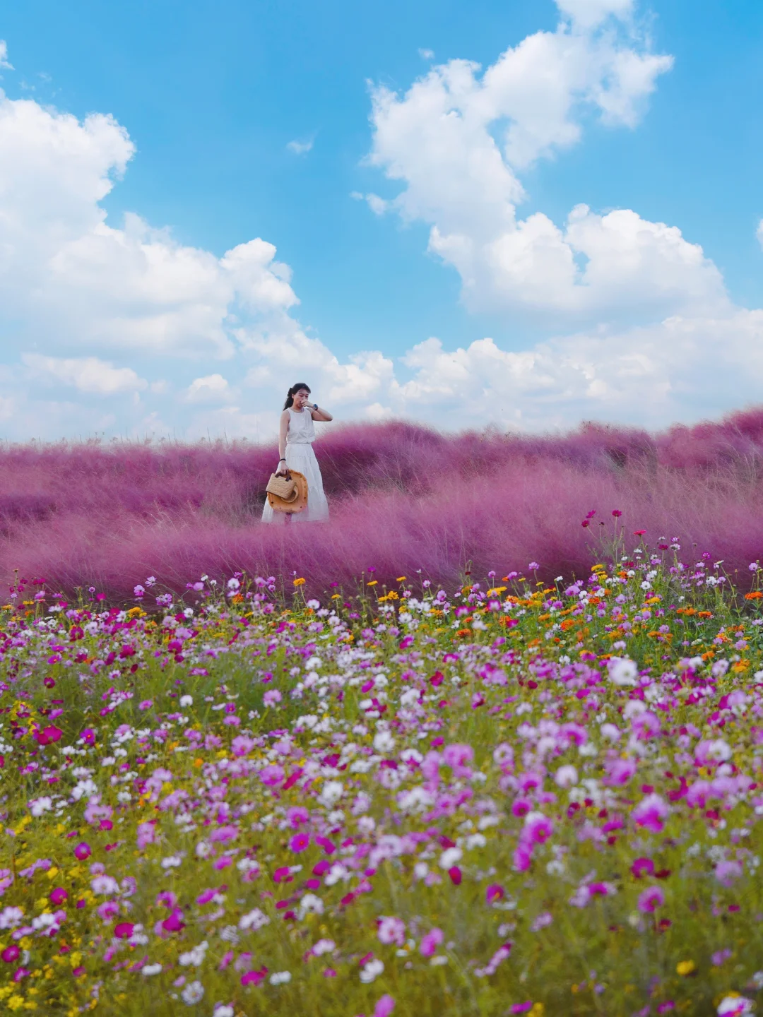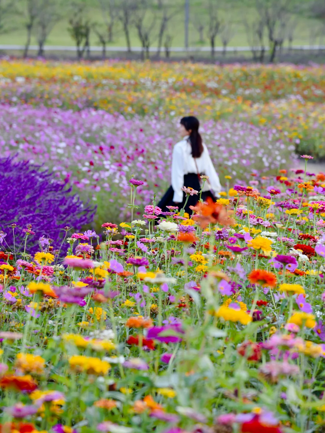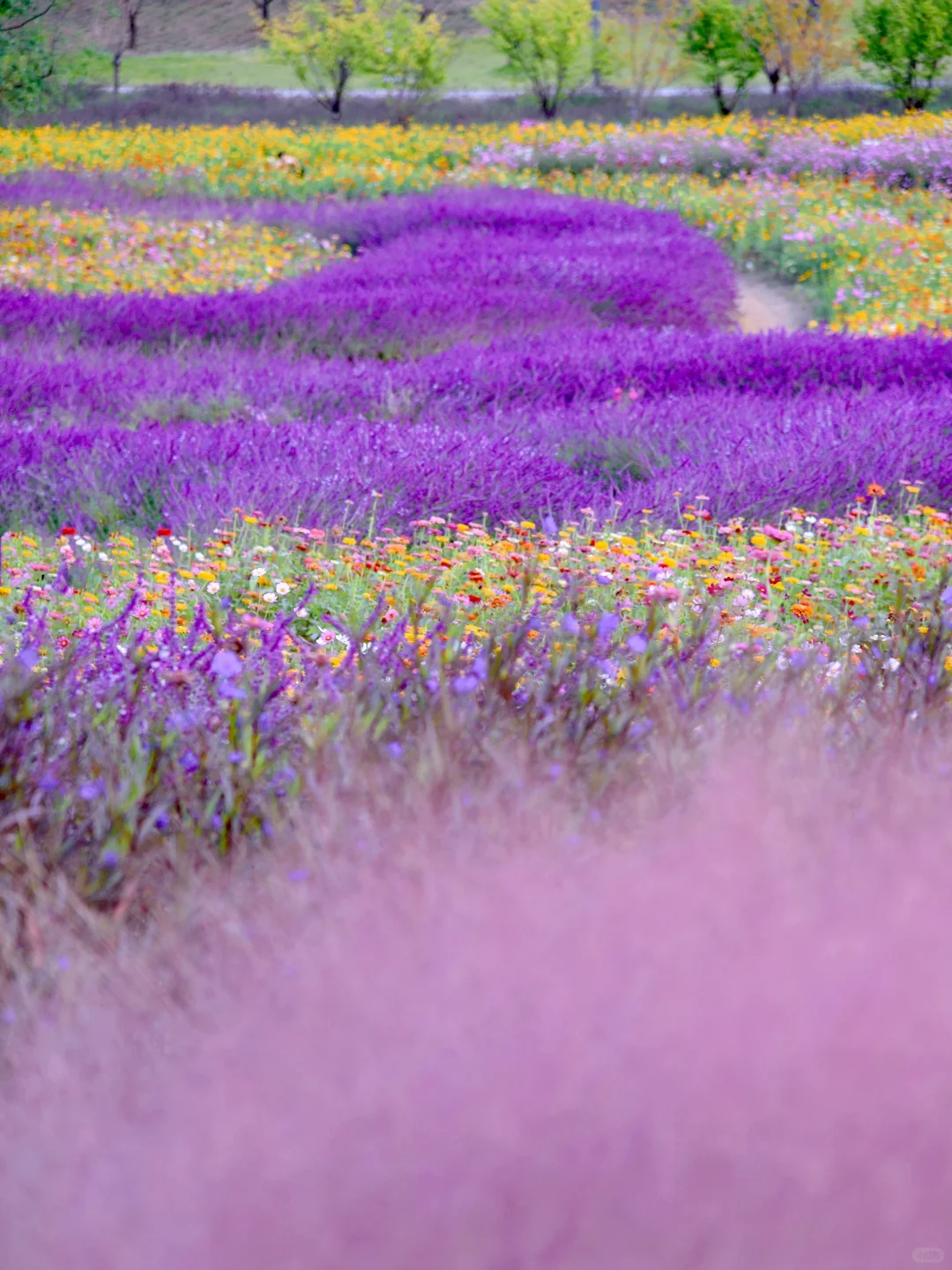 粉的、红的、紫的,各种颜色的花儿交织在一起,真的超级梦幻