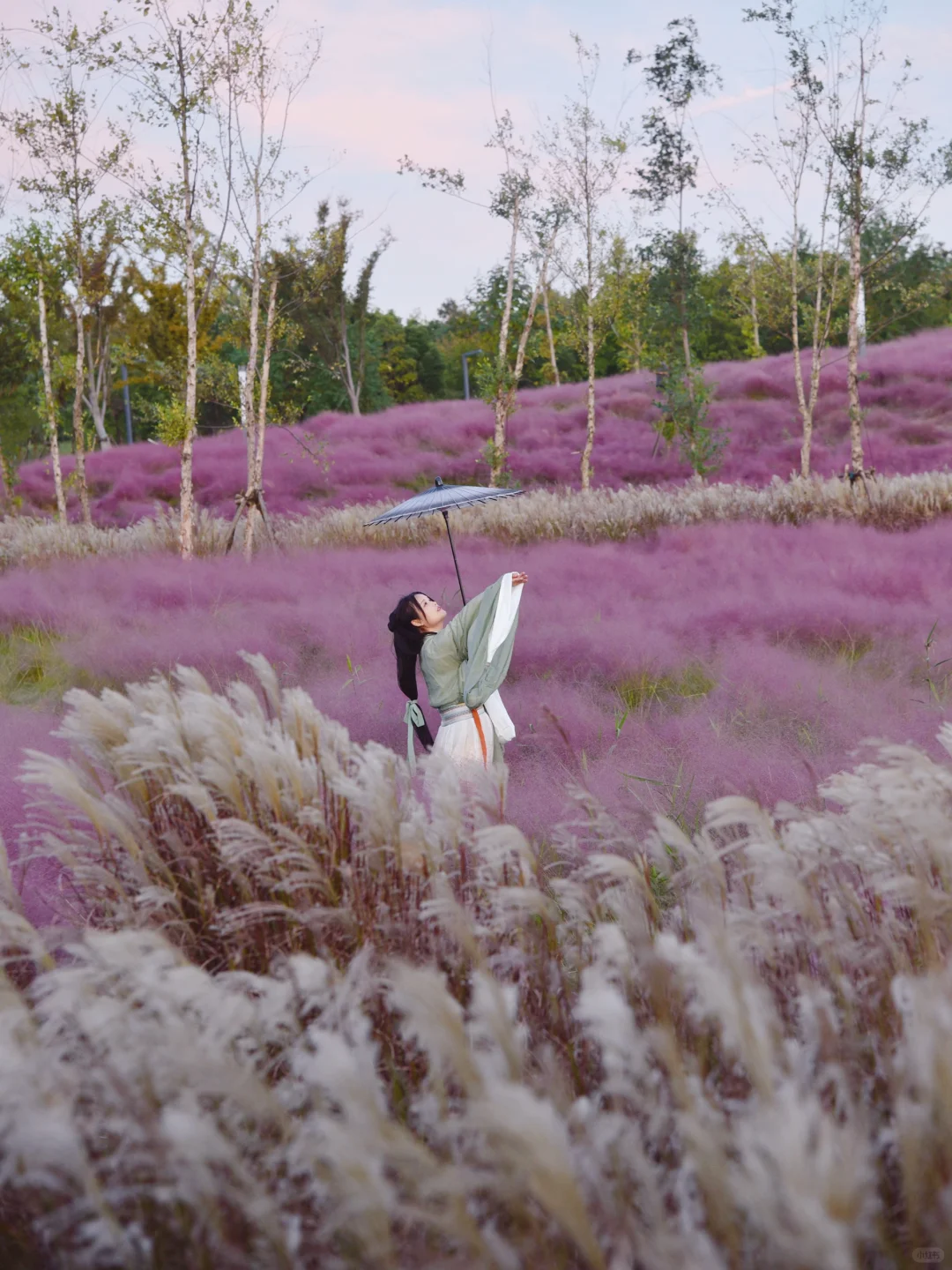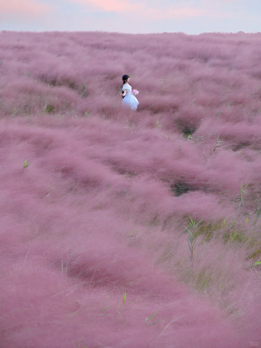 和粉黛挨在一起,傍晚有风的时候芦苇也很美丽啊