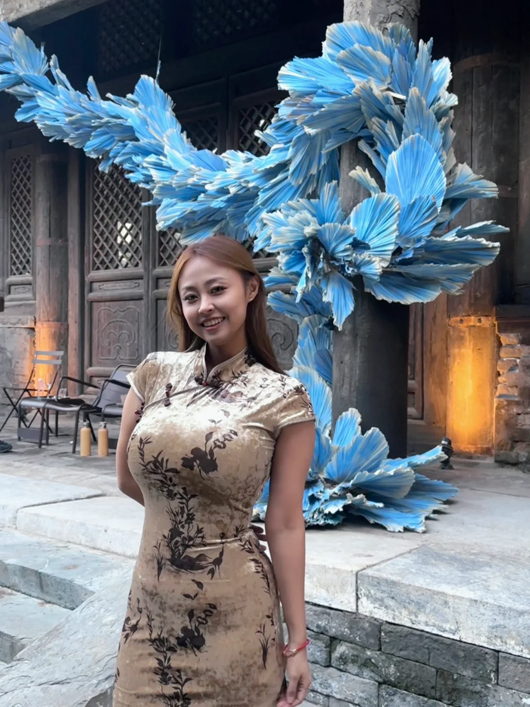 弯腰的那一瞬,全场焦点都在你身上。没想到女神眼纹也这么重,都笑出褶子来了。裙子很