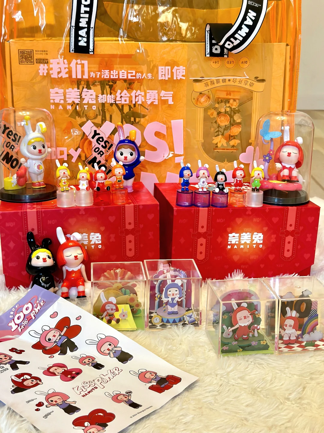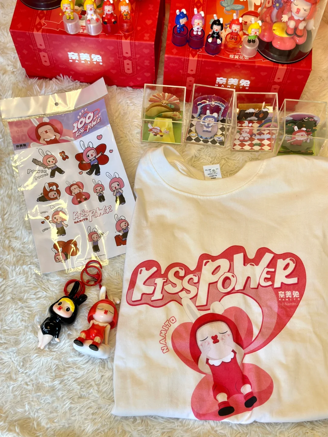 前几天收到了朋友寄来的奈美兔KISSPOWER礼物🎁(大概就是有显眼包、贴纸、T恤、还有开心豆明袋,场景系列明盒,明盒摆件)尊嘟好可爱~