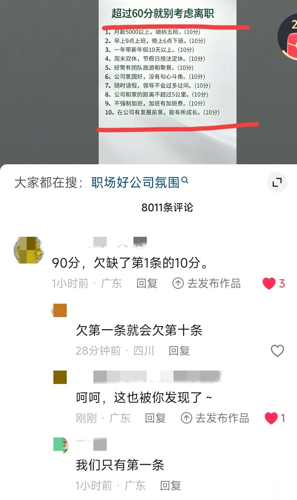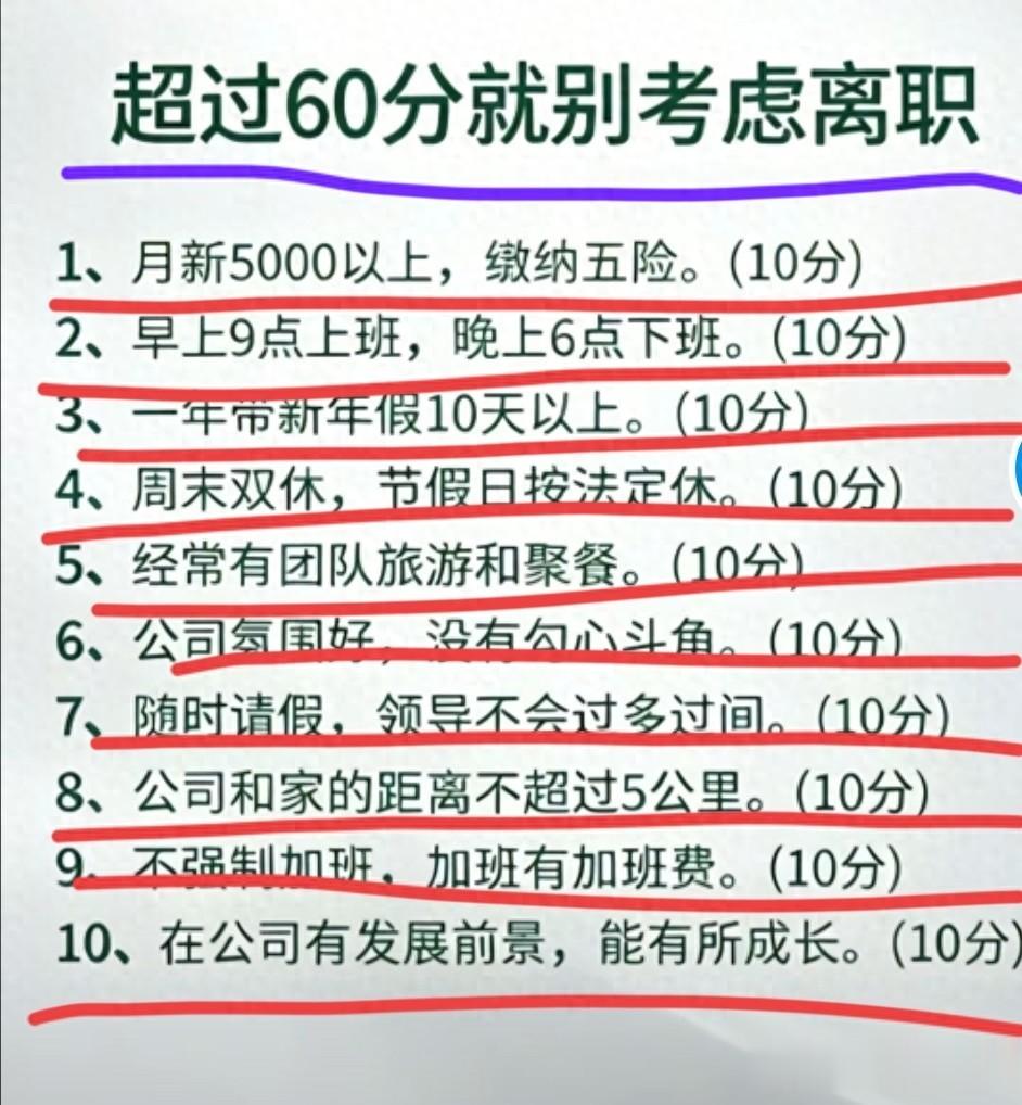 今天无意之中刷到了这么的一个视频,他发了一段文字出来说这是职场法则,超过了60分,就不要轻易的考虑离职了。