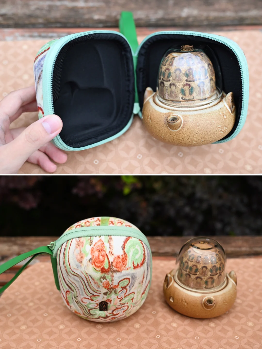 带上我新买的万仟堂敦煌器象系列茶具——千佛指引快客杯,出来露营喝茶赏秋,真的很惬意!茶具包含了一个茶壶+两个杯子+一个便携包,小小的几乎不占位置,随身带着很方便