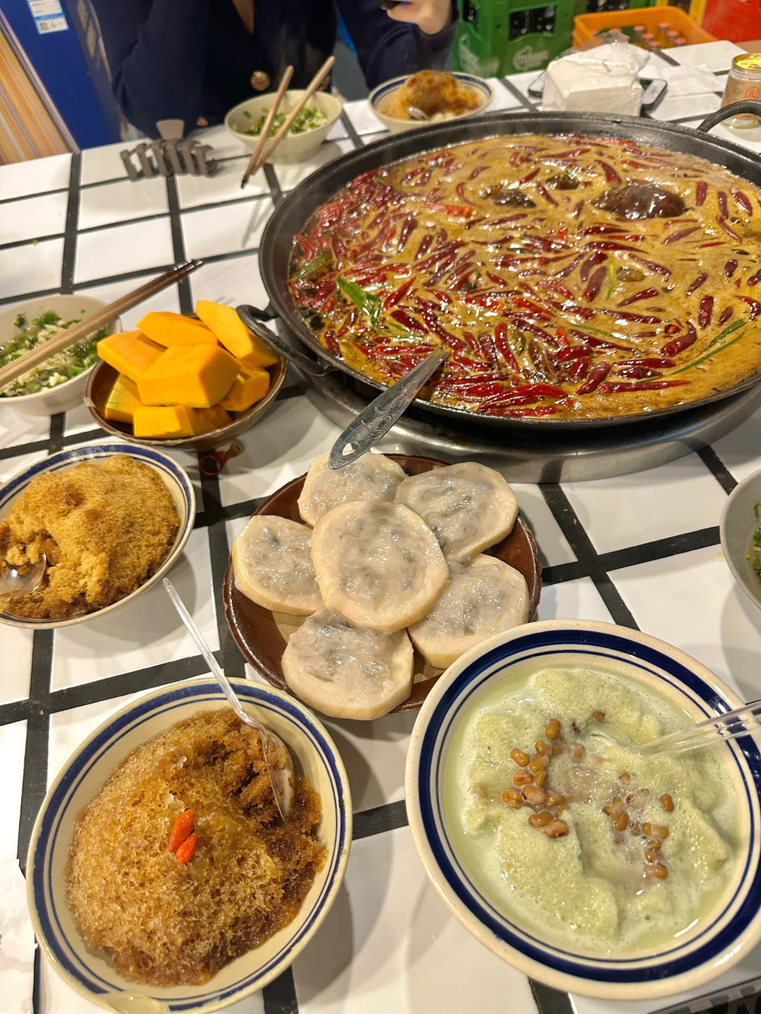 本地朋友带着去吃的,微辣锅底🌶️社区火锅是真好吃,价格不贵!虾滑藕片,蒜香排骨,双椒牛肉啥的都🉑