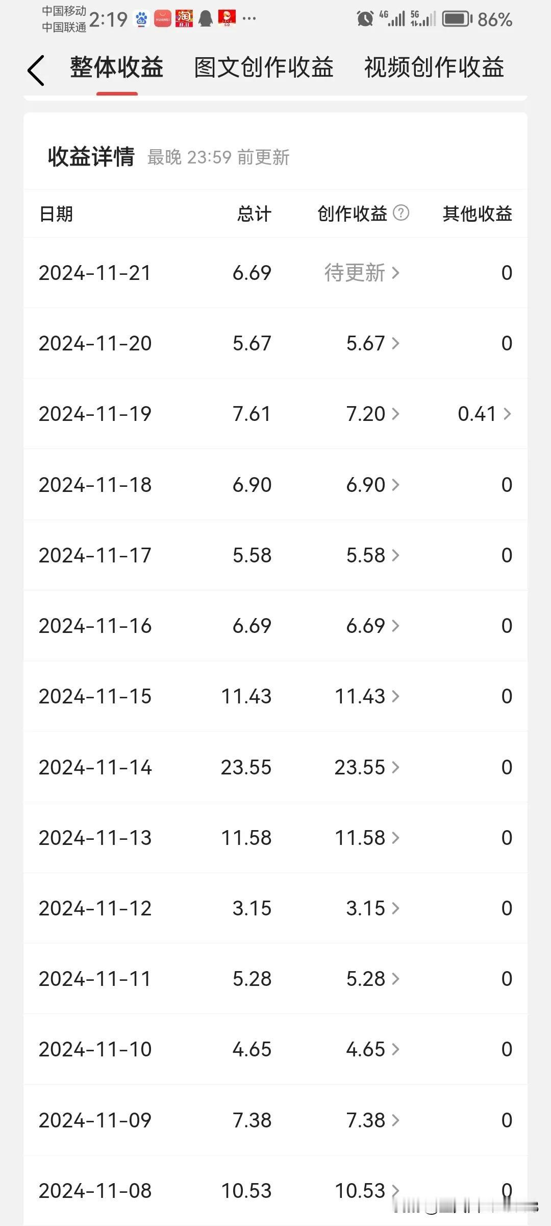 写头条快两年了,赚了3千多元,也许是最少的,但挺知足的,朋友说她在农村,每年养两头猪卖,也只能赚一千多。 我也相当于每年养了两头猪,出了收益,还结实了很多善良的友友,长了见识,了解到不同地方不同的风俗,不同的友友,不同的性格,咱们来自五湖四海,在头条相遇。 还可以把心情心事分享,记录我们的过去,和对未来的期望,友友们,咱们一起加油!