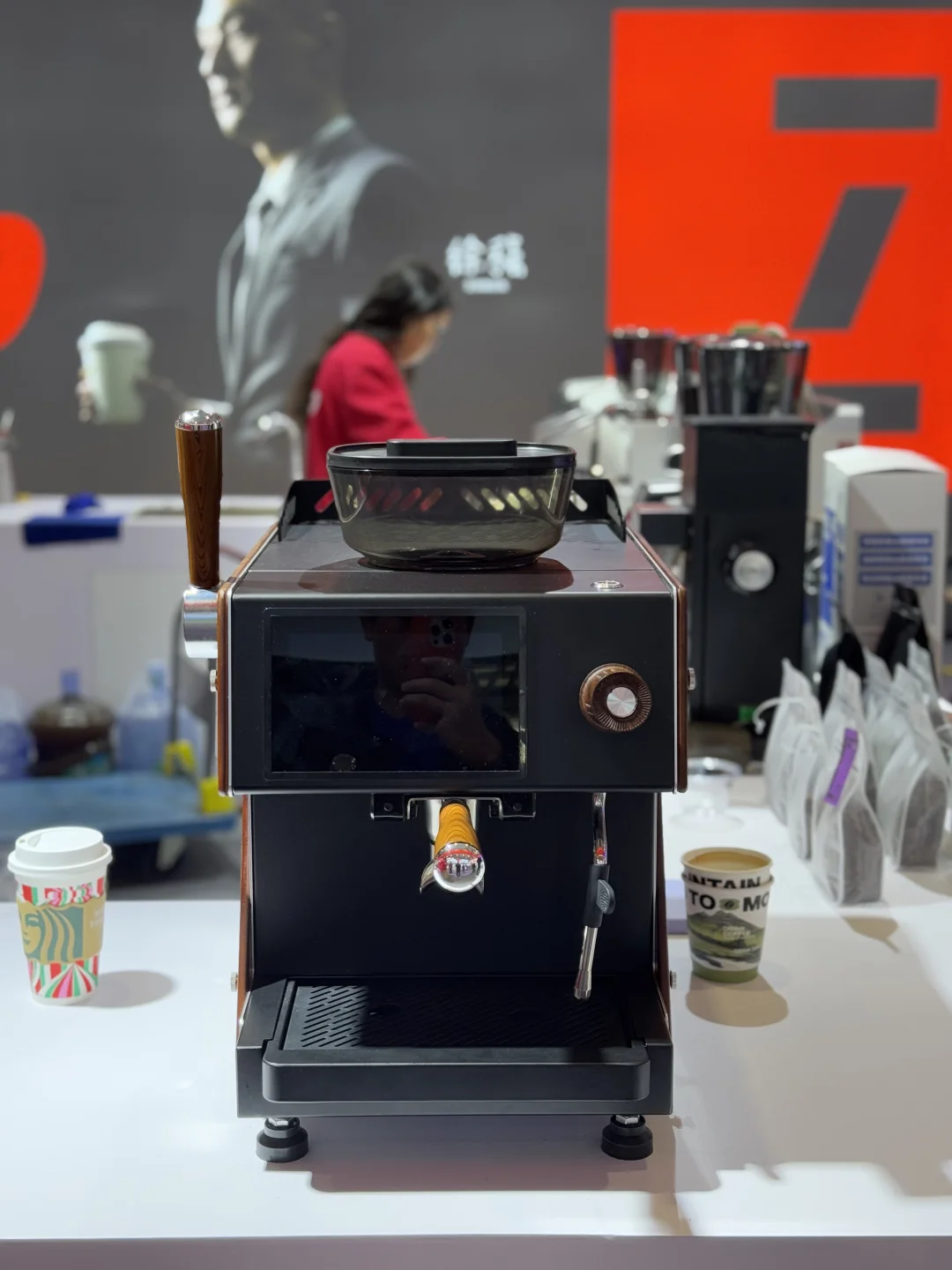 这家是源头OEM咖啡机制造厂商,机器配置很顶,商用咖啡机,商用萃茶机,这些都涉足,但是没看到面向c端客户的产品,主要还是为b端服务,可以帮新开咖啡店饮品店一站式解决前期工作,上手试了一杯咖啡,蒸汽很猛,但是业务员介绍的时候,还是对机器不太熟悉。
