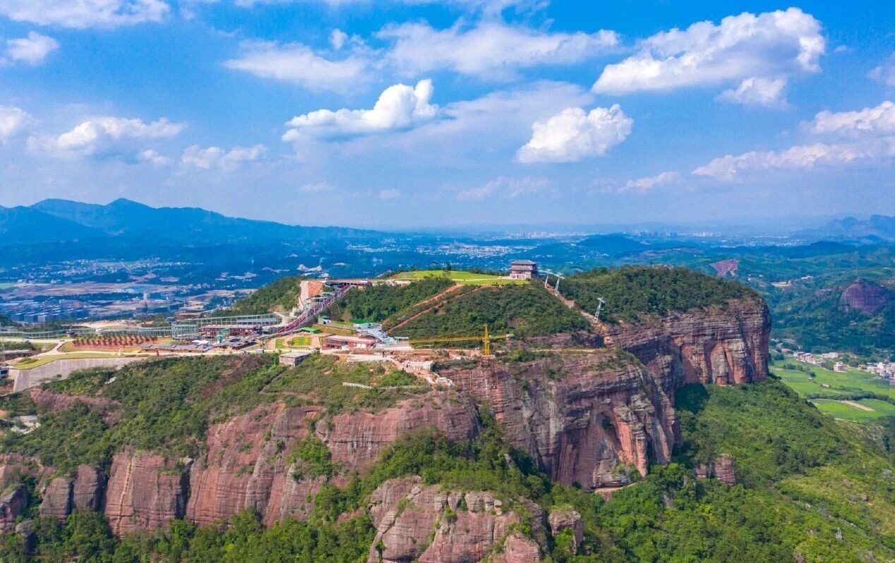 广西·铜石岭:一座山长着两种面孔自驾到广西玉林的北流市,你会发现一个神奇的地方——铜石岭。说它神奇,是因为它的地质构造太罕见了:山下面是水溶蚀的喀斯特地貌,上面却是风化形成的丹霞地貌。一座山,两种完全不同的面孔,远观巍然独立,部分山体呈朱砂色,千姿百态,造型各异。现在景区开发得很完善,电瓶车可以直通山顶,上面有悬崖秋千、玻璃滑道、网红桥等娱乐项目。景区还刚建好了观光索道,正在调试中,不久就能投入使用。更值得一提的是它的历史底蕴——据说早在汉代,南越王赵佗就在这里开采铜矿。玩乐的同时,还能触摸两千多年前的历史。