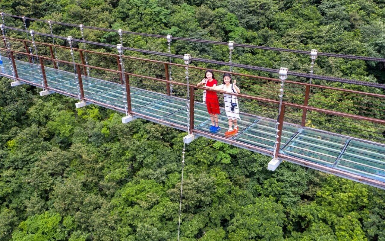 郑州·伏羲山:敢不敢来挑战你的极限?距离郑州只有56公里的伏羲山,藏着好几个让人心跳加速的网红打卡点。这里有中原第一条高空玻璃吊桥,全长210米,站在上面往下看,脚下是万丈深渊,胆子小的人真的会腿软。还有世界最长的玻璃环廊,比美国的那个还长出9米。走在上面,感觉自己悬在空中漫步,脚下的一切都变得渺小。如果你觉得这些都还不够刺激,那世界最高的悬崖秋千绝对能满足你。相对高度22米,秋千荡到最高点时,距离悬崖底部864米。想玩?必须先量血压、测心率,还得签“生死状”。这不是夸张,是真的。最后还有亚洲最长的丛林穿越滑道,全长2000多米,落差200米,一路滑下去,步步惊心又欲罢不能。