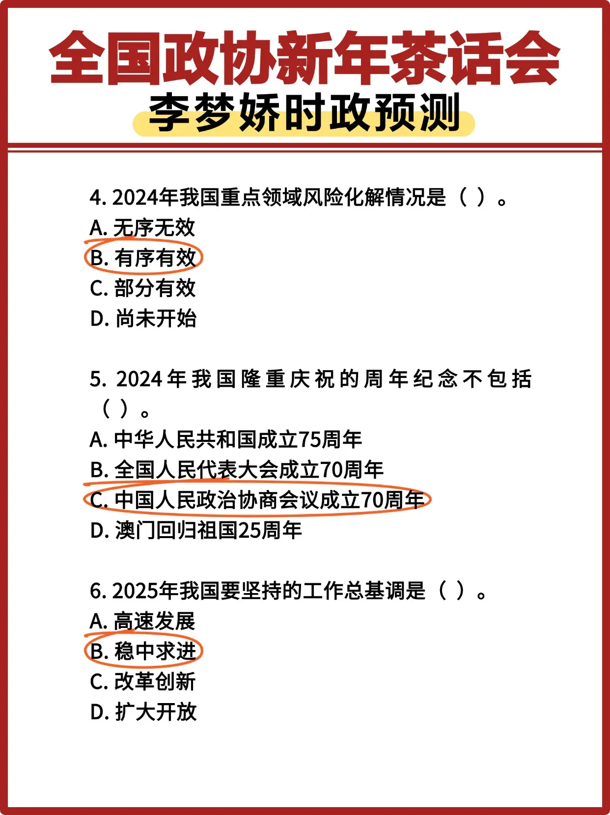 《2024年12月31日在全国政协新年茶话会上讲话》李梦娇时政预测题