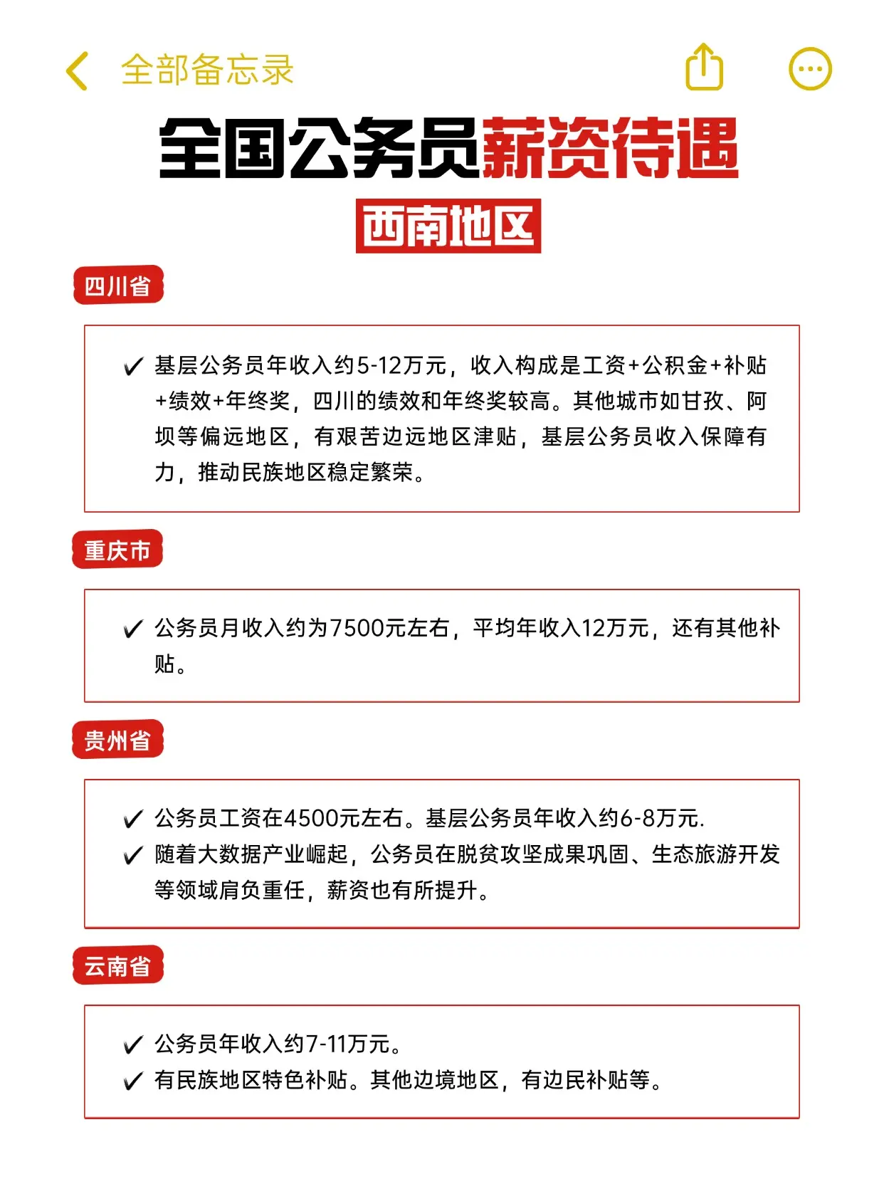 全国各省公务员薪资待遇图,看看你的地区待遇怎么样?