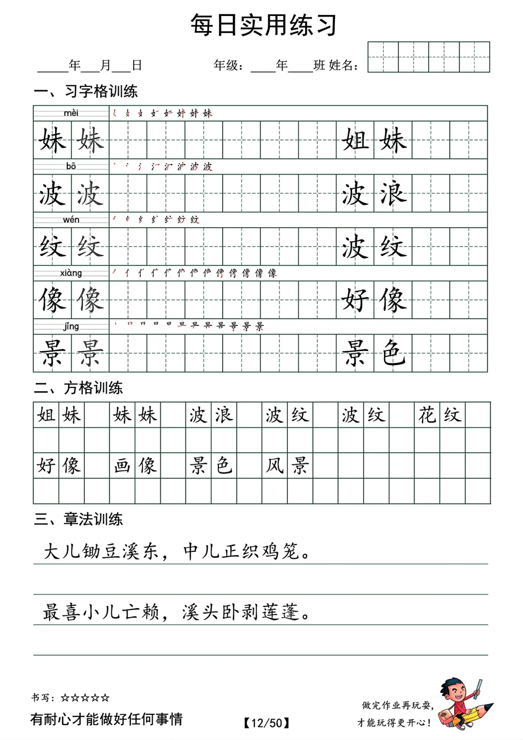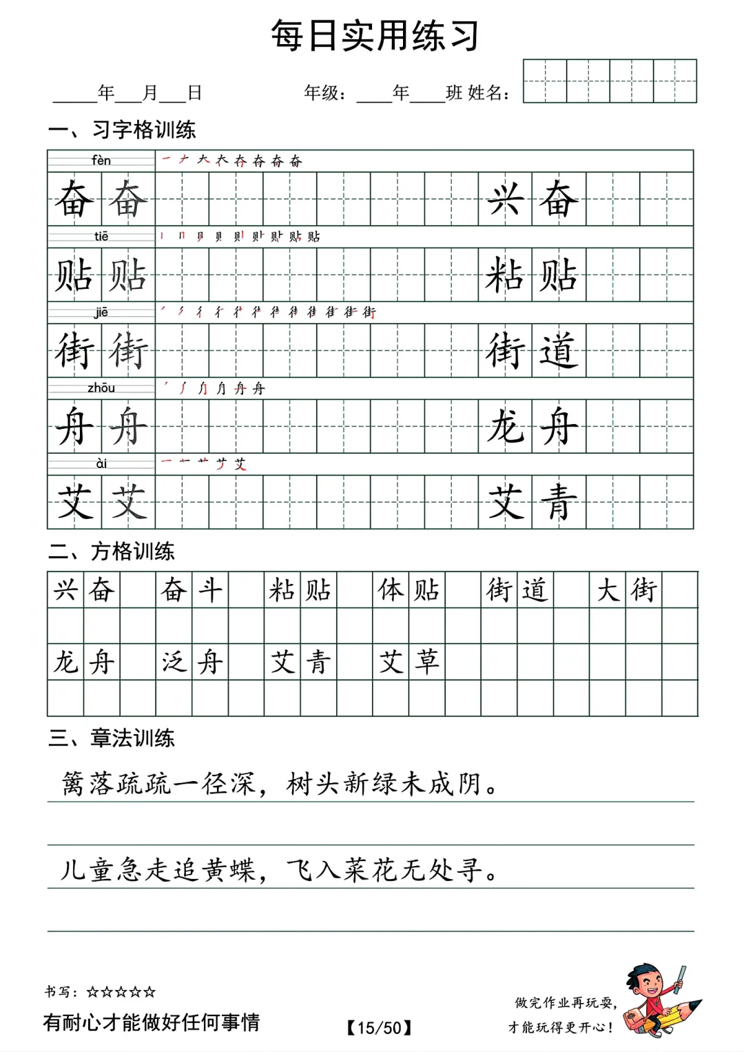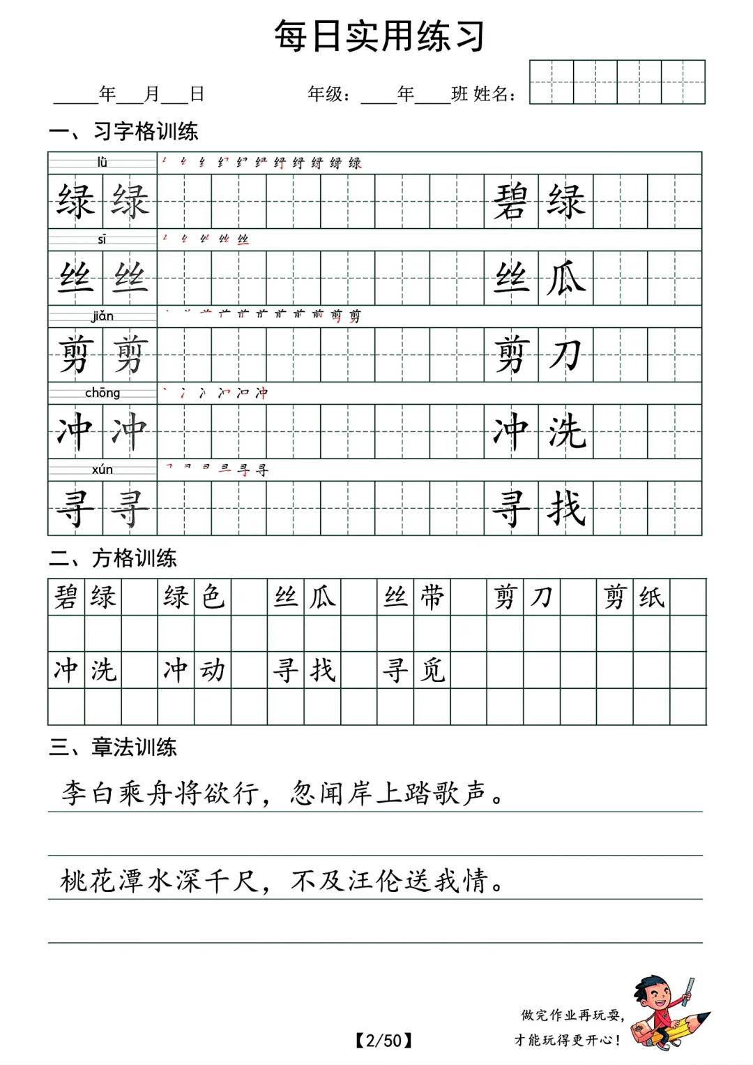 最新的。 共50页pdf,二年级下册语文的字帖,挺适合寒假时候孩子提前写写的