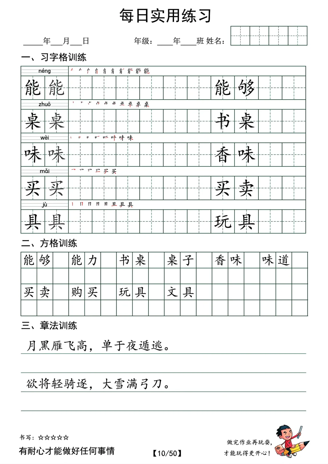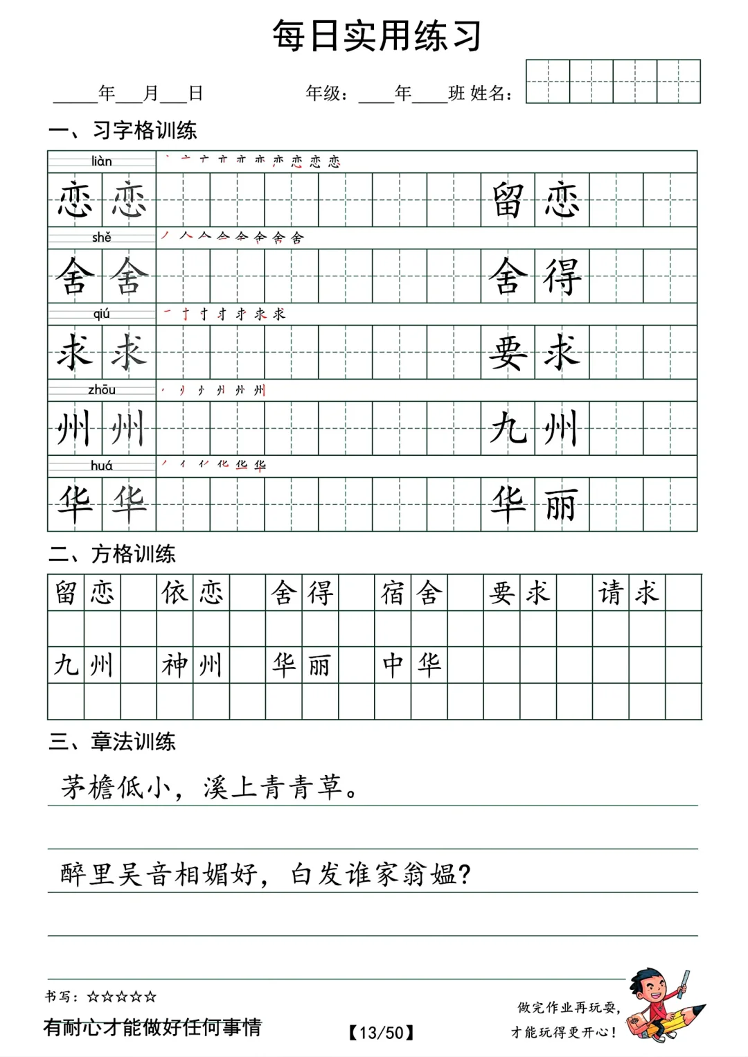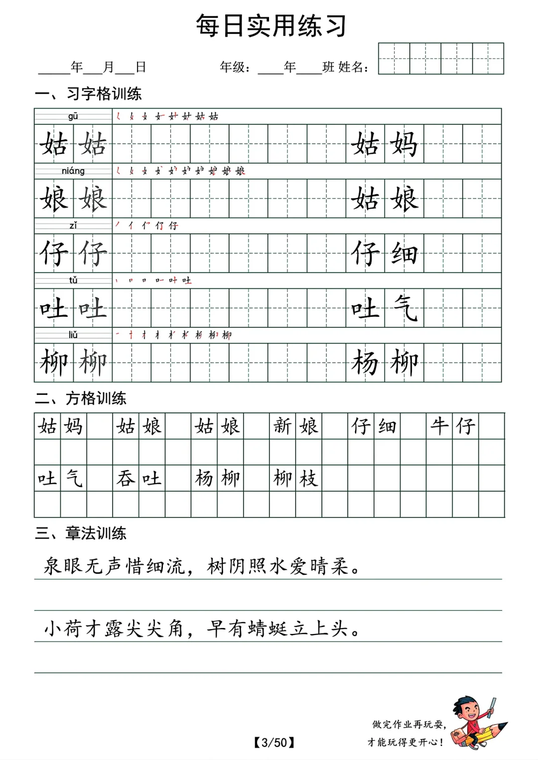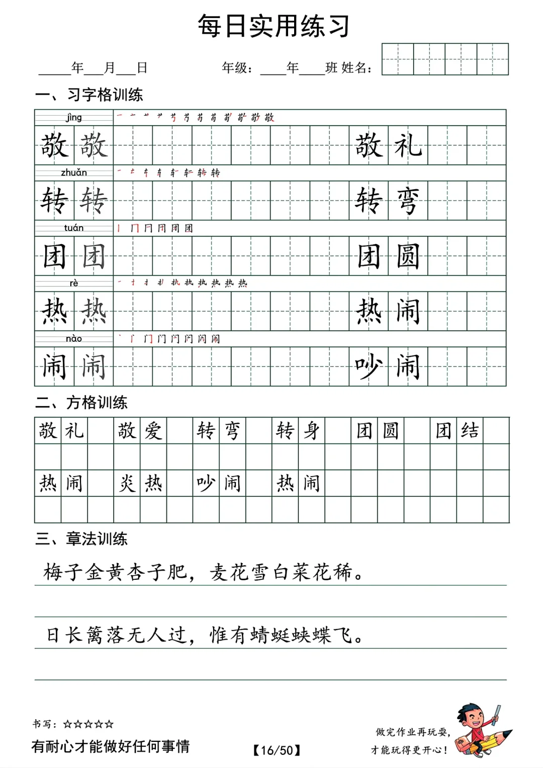 最新的。 共50页pdf,二年级下册语文的字帖,挺适合寒假时候孩子提前写写的
