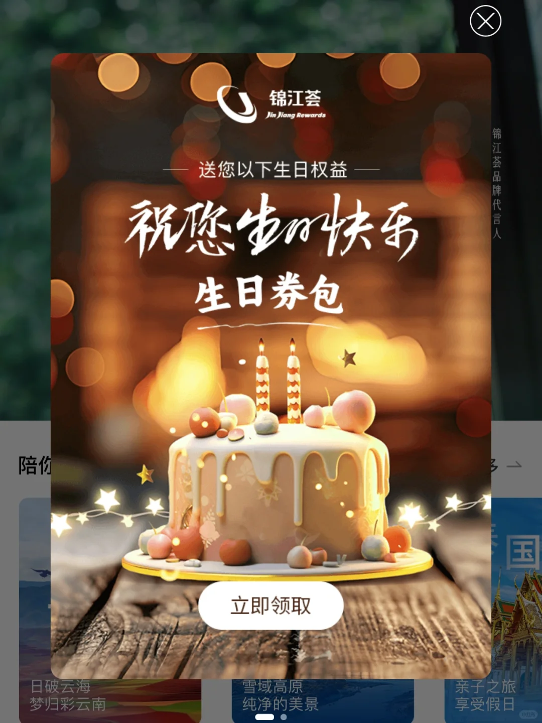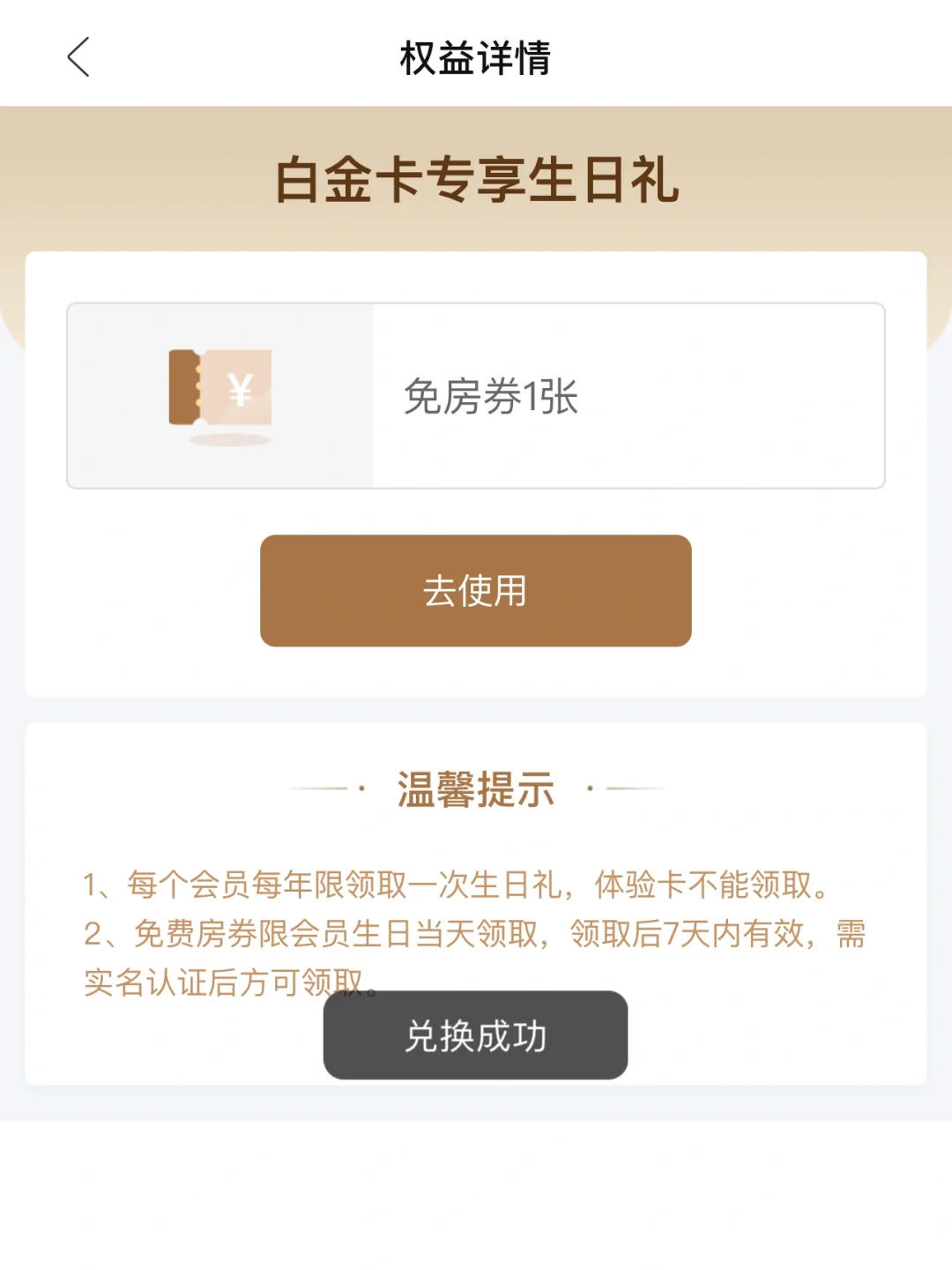 每年生日都会送一张免费房券