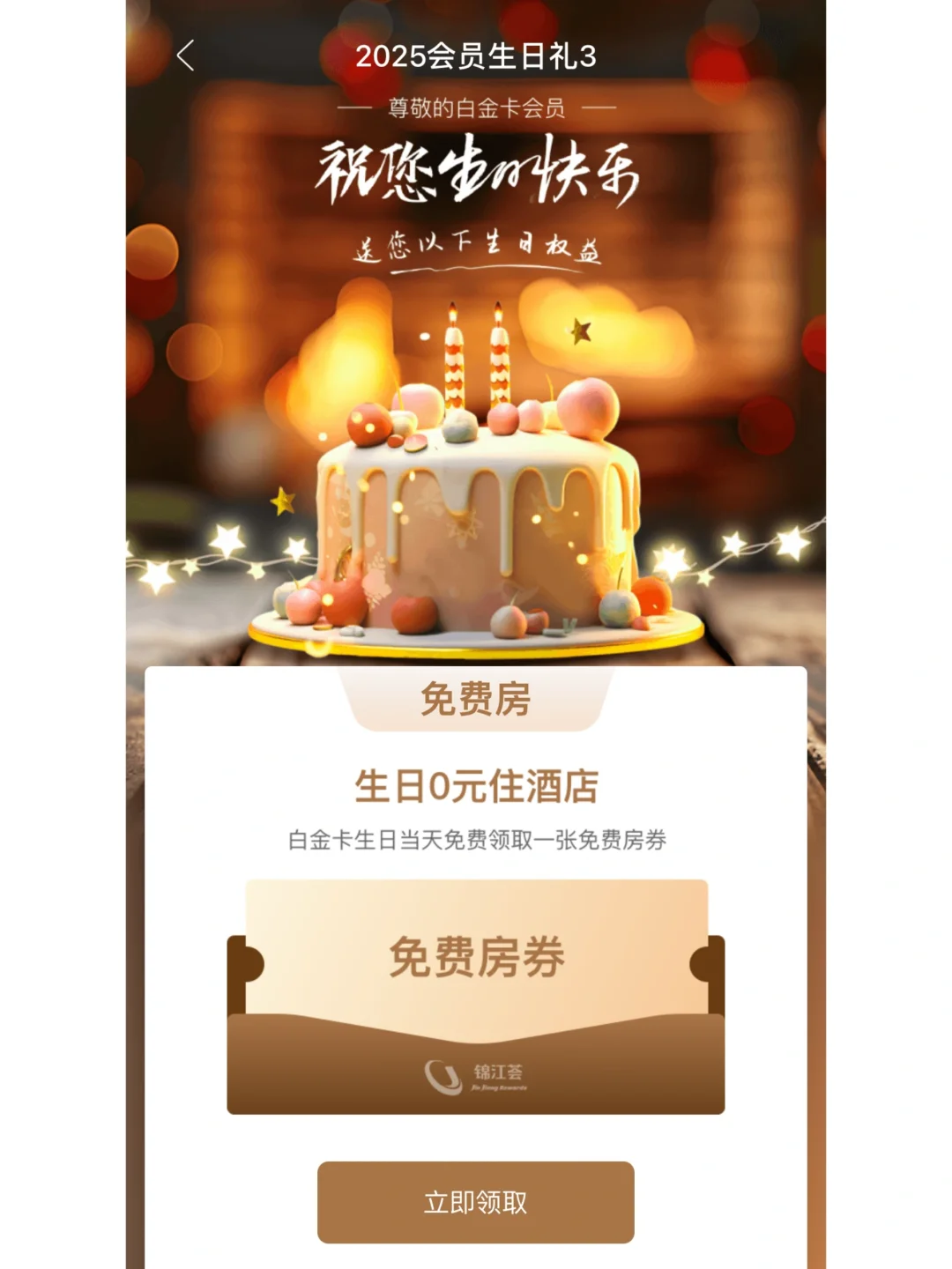 今年生日直接给我送了一张免费房券!!!