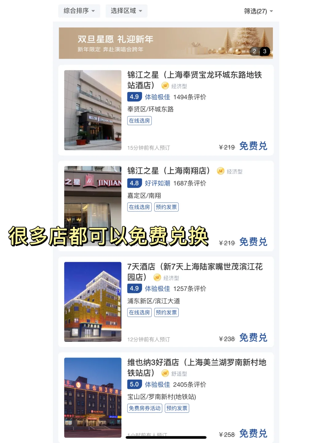 上海很多酒店都可以兑换(锦江之星、7天、维也纳、锦江都城等)