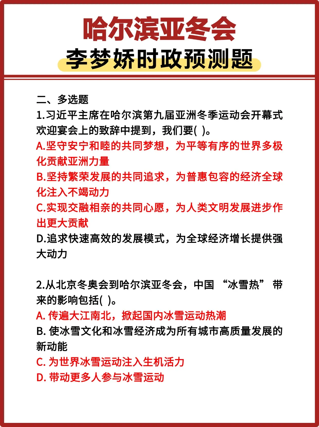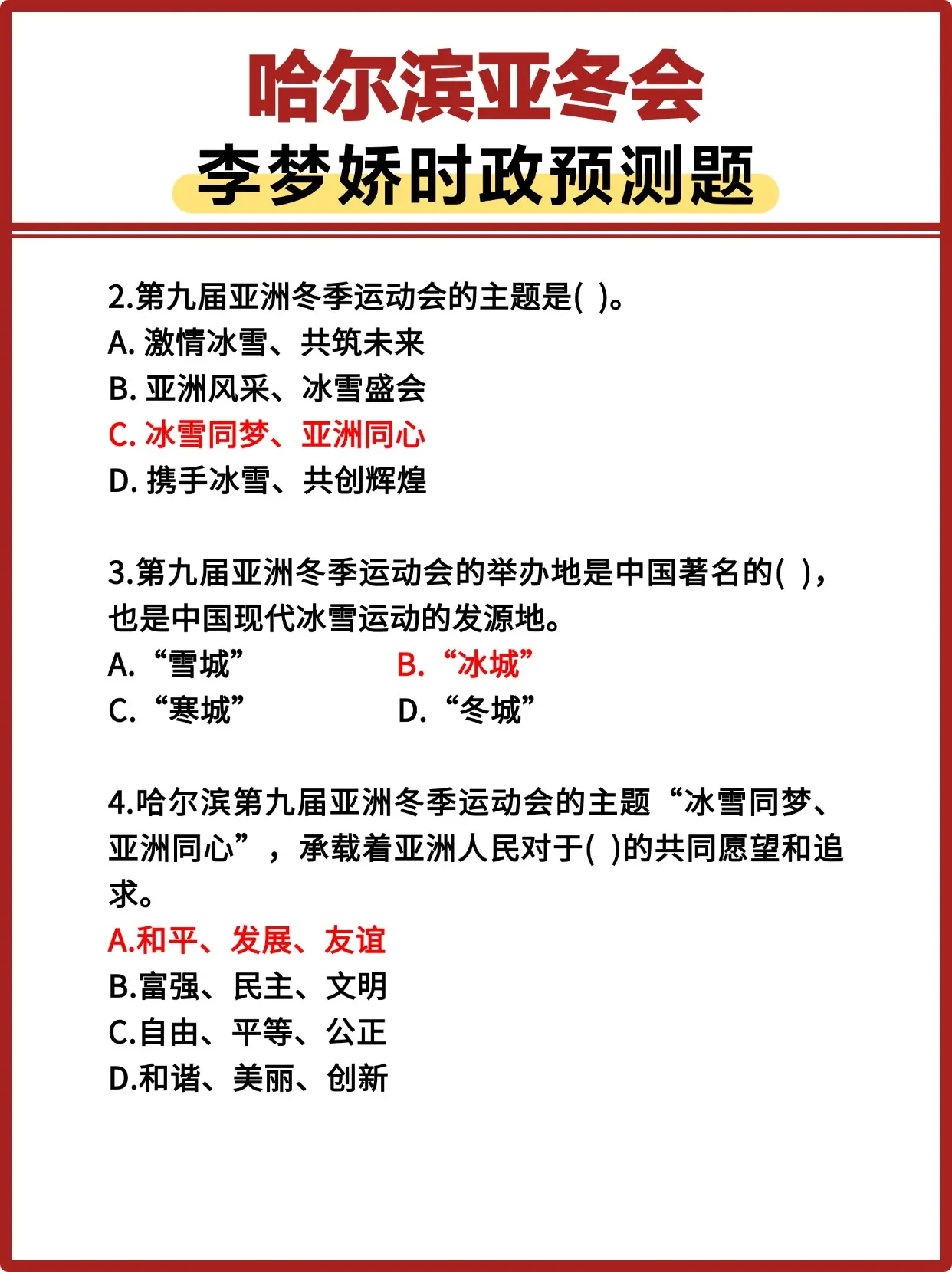 哈尔滨亚冬会李梦娇时政预测题