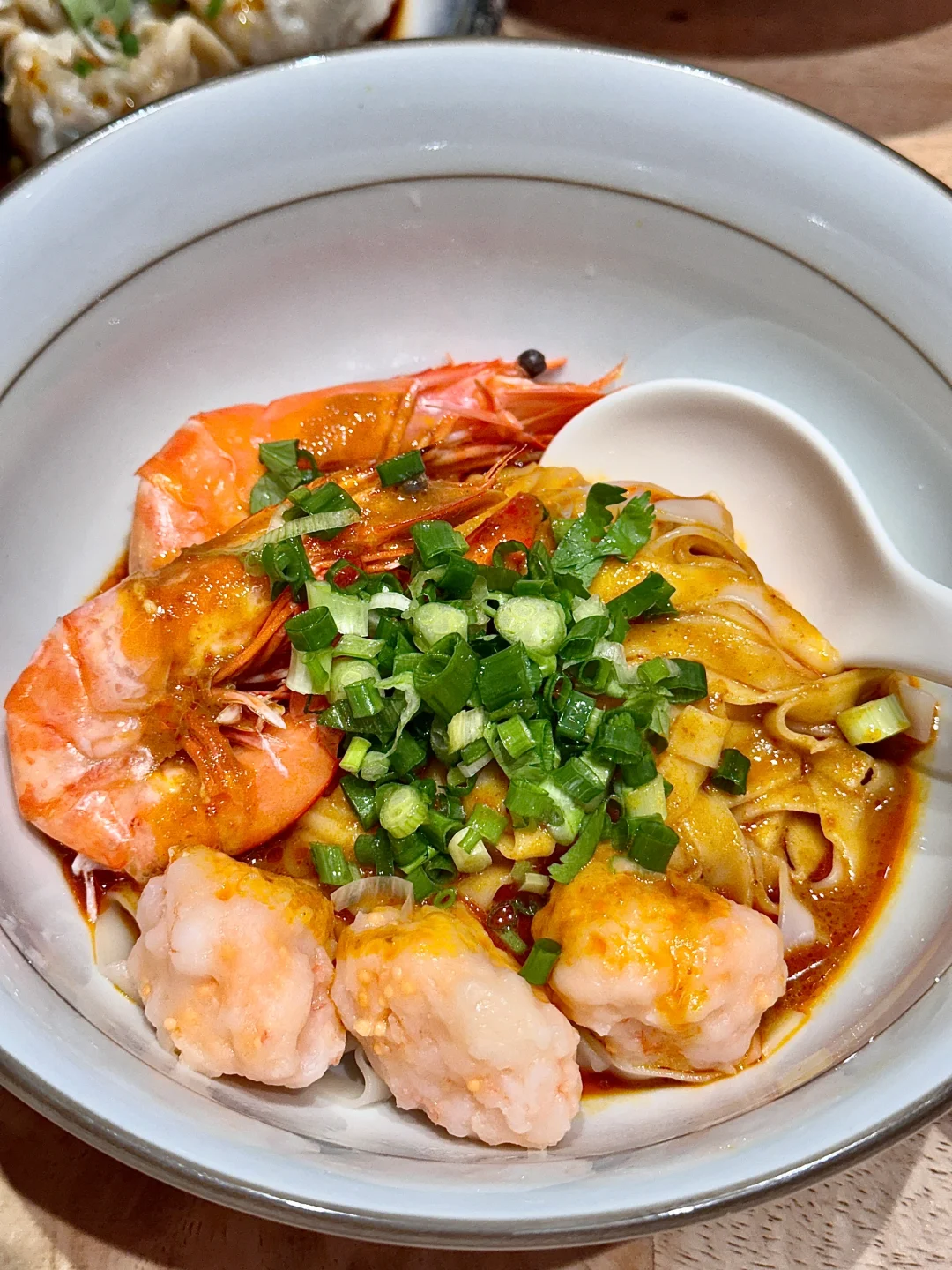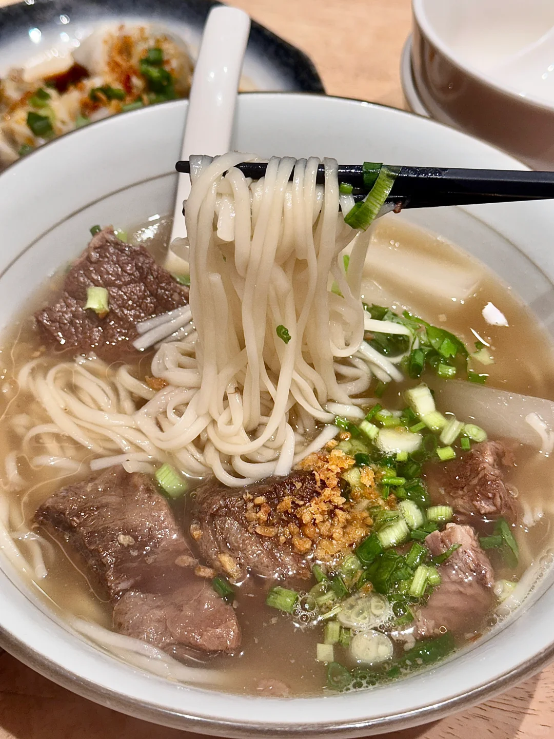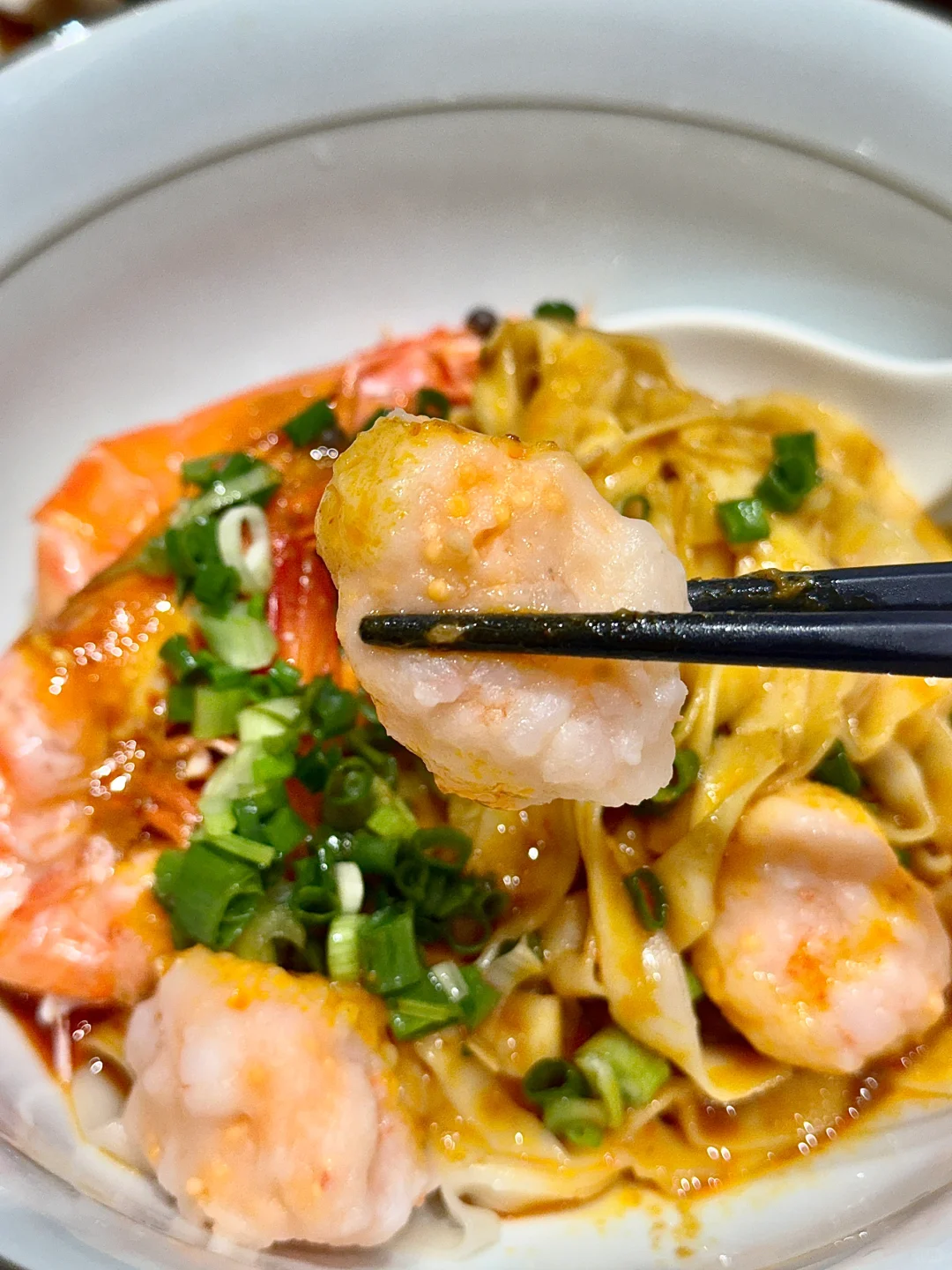 在乐牛吃到了【和牛拉面】和【虾滑鲜虾咖喱干捞】,牛肉块很大并且入口即化。十多块新币,加3.9还能选一份小菜(份量不小!!)和饮料。牛肉面他家做的还是非常不错的!