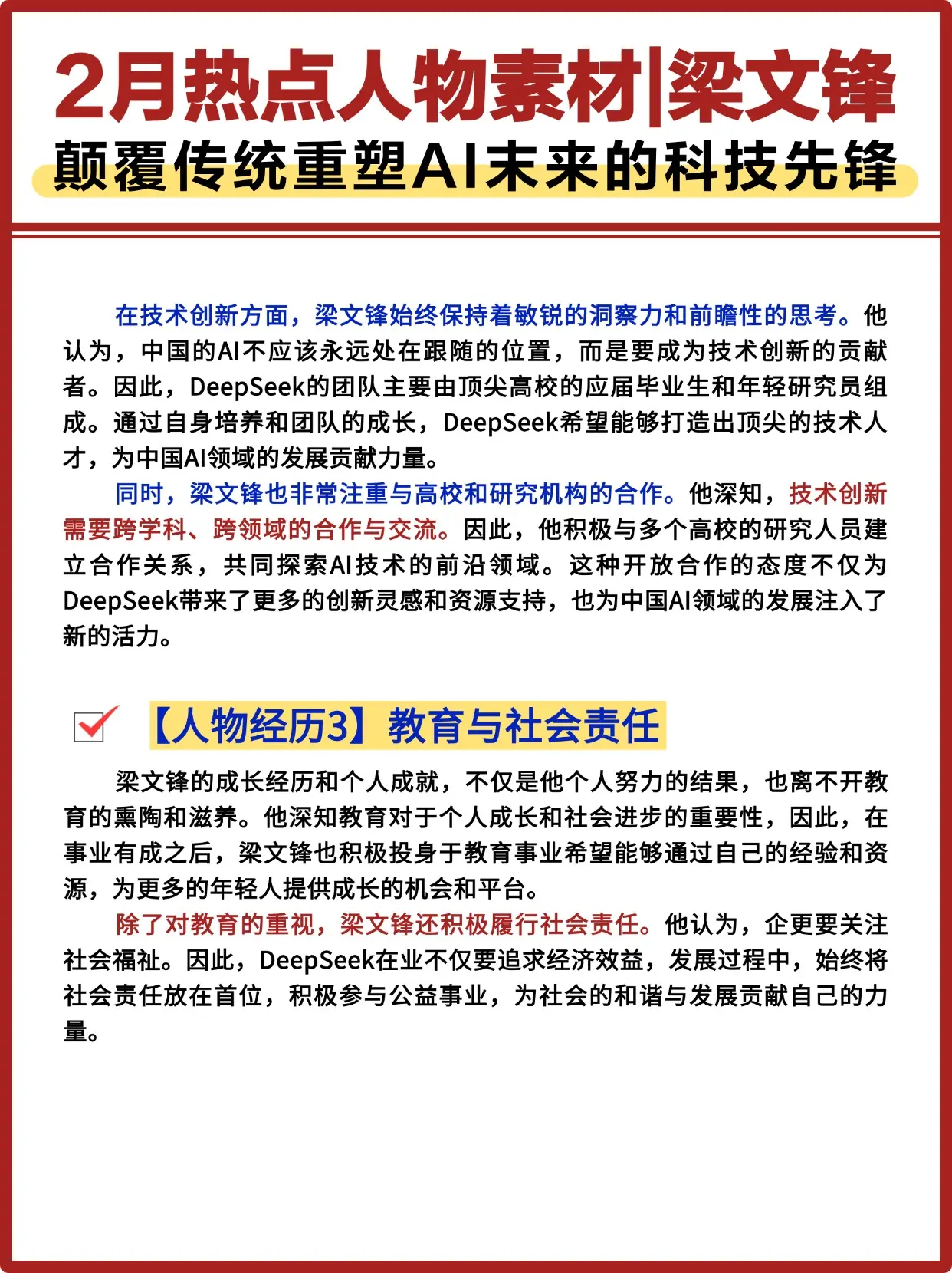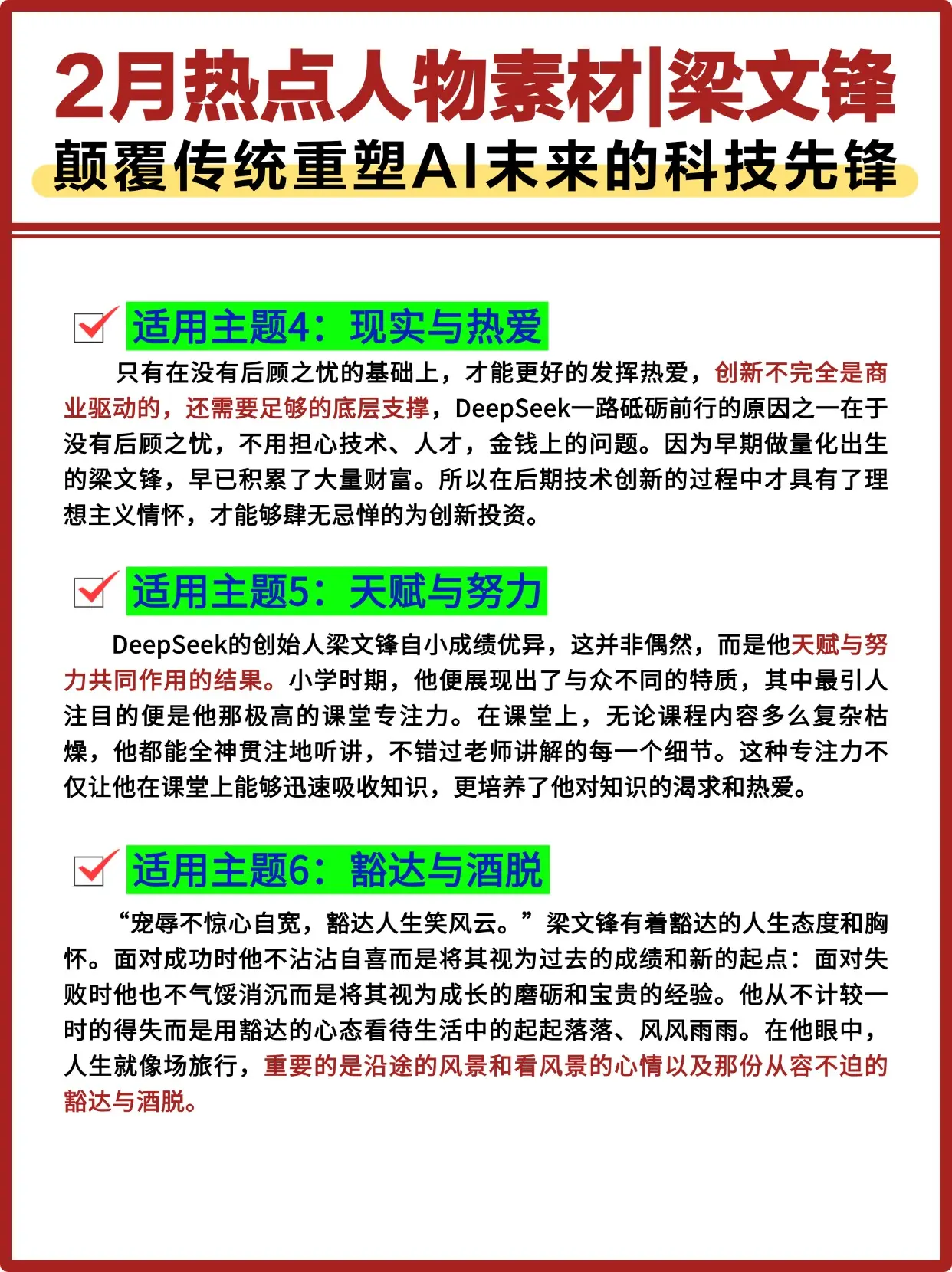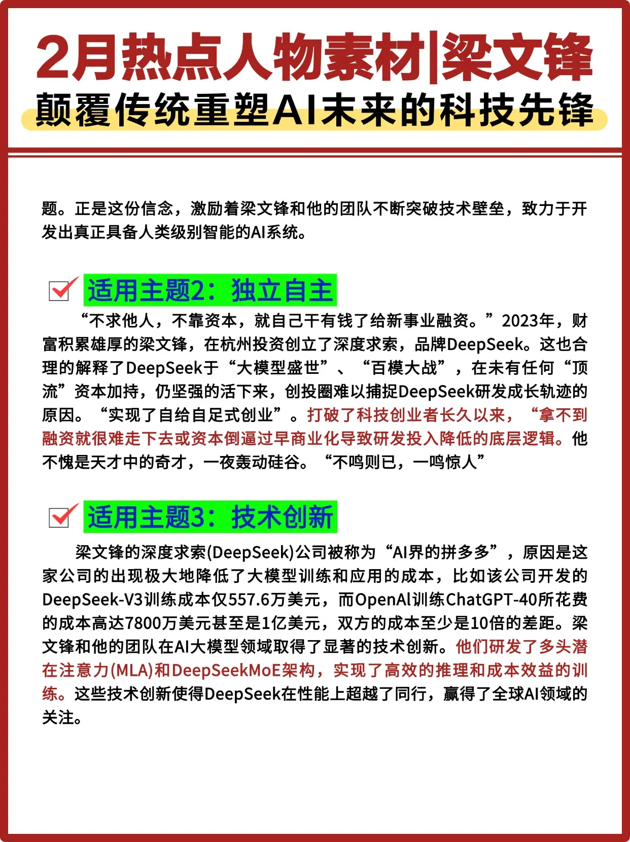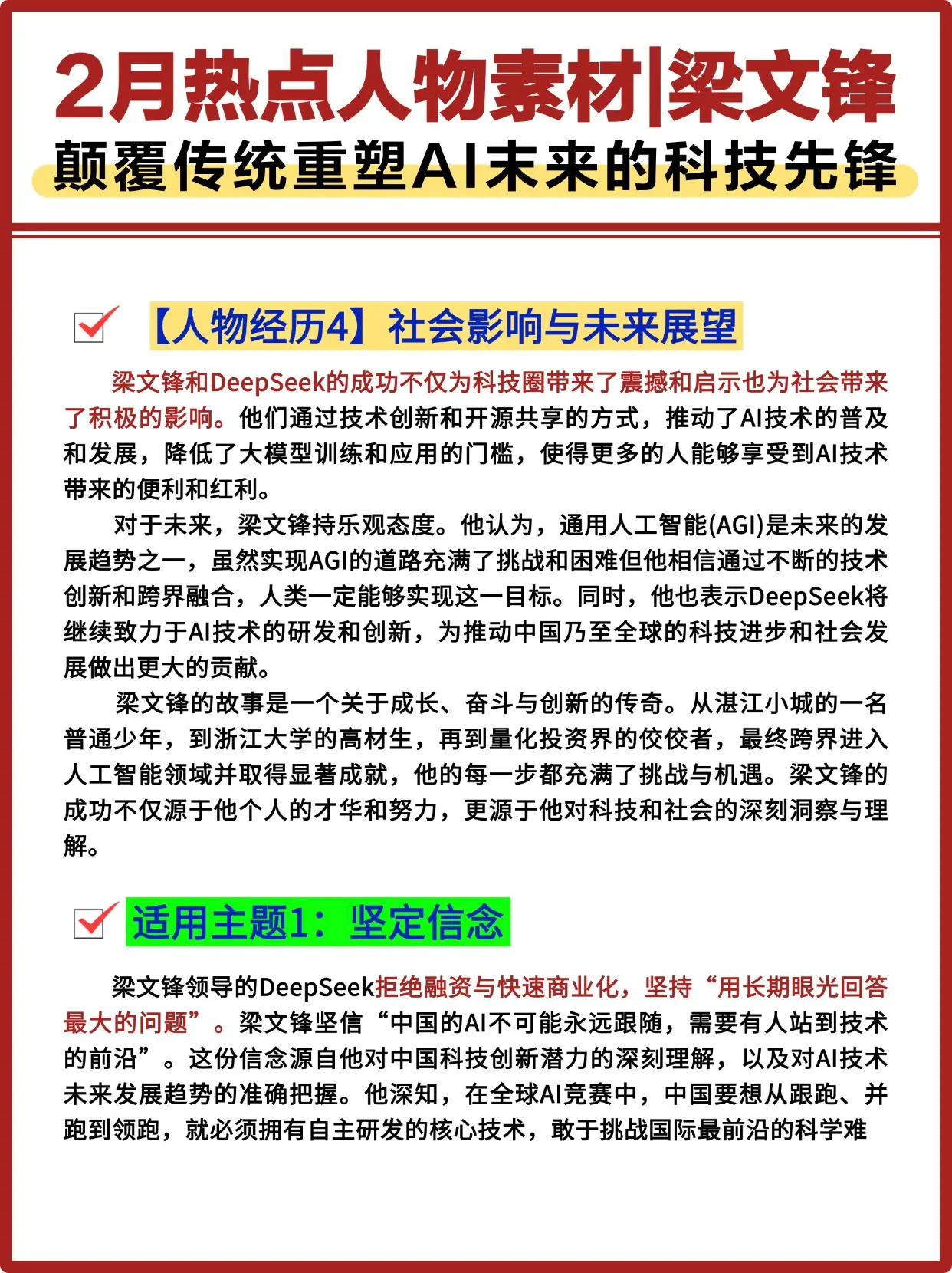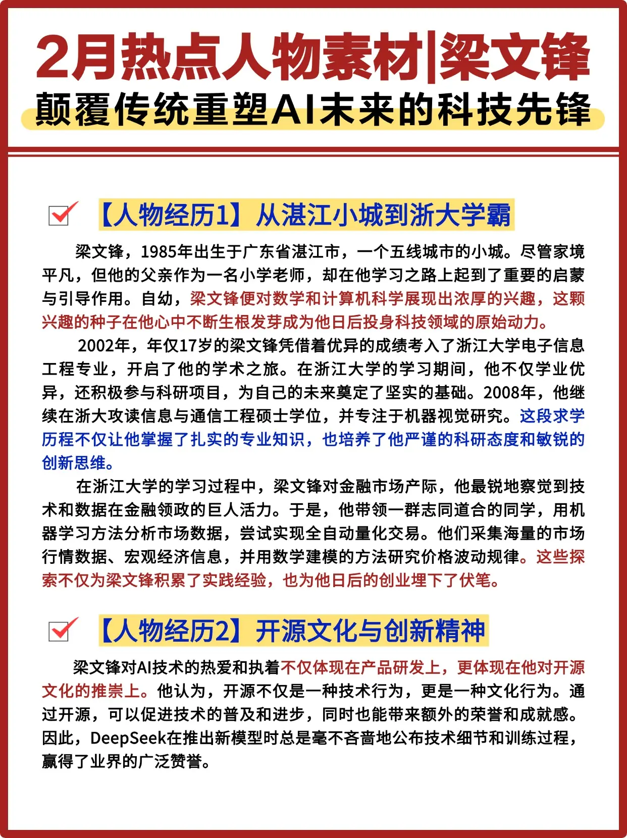 2月热点人物素材Deepseek创始人梁文锋