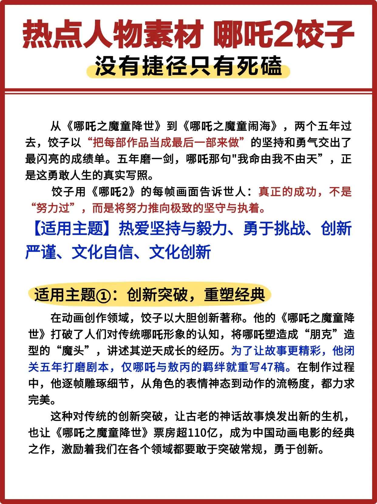 2月热点申论作文/面试人物素材《哪吒2》导演饺子