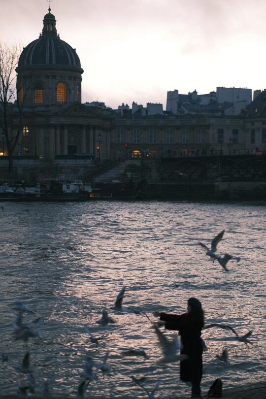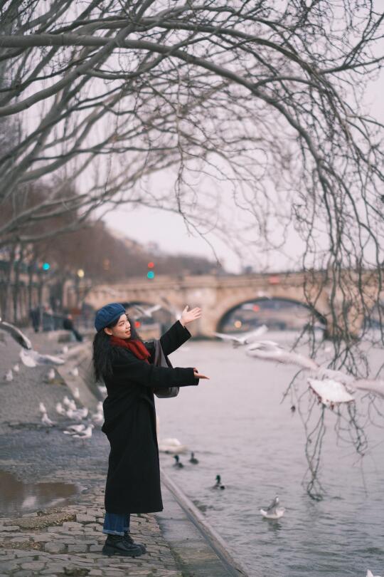 在塞纳河边捕捉到了一幕超治愈的画面!