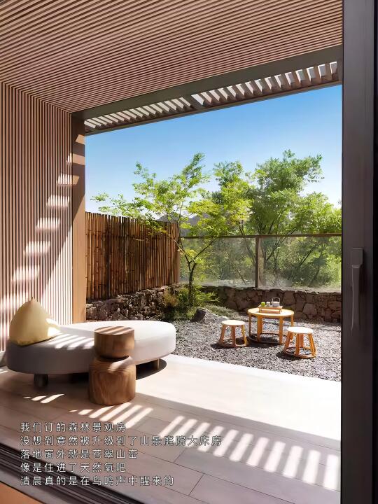 落地窗外就是苍翠山峦 像是住进了天然氧吧