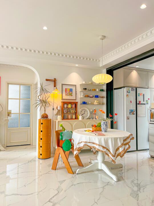🌸关于户型 我家建筑面积116平,套内93平 标准三室两厅一厨一卫,西边户两间南向卧室 客厅开间4m,高2.66m - 🌸关于装修 客餐厅地面是白色瓷抛砖,墙面纯白色乳胶漆 卧室背景墙是浅浅的奶油色 其余墙面纯白色 地面是灰色系多层实木地板 大件家具都是浅色系 搭配木色小件家具和彩色小装饰让我家更有了烟火气 - 🌸关于生活 自从有了宝宝后,我发现之前的空调只在意颜值,现在越来越觉得能同时搞定电费刺客、过敏元凶和哭闹炸弹的空调,才是有娃家庭最理想的避暑搭子👍 这台陪我们度过整个三伏天的海尔净省电空调,用三个月让我明白:省下的不止是电费,更是当妈的焦虑 它就像摸透了我们的省电心思,利用AI节能算法,自动匹配我家卧室面积和使用习惯,帮我想着法的省电。再加上全新的变频驱动技术,把温度保持稳定的同时,还更加节能。有这么多buff在身,难怪它的APF值高达5.34,远超一级能效,整年下来帮我省了近四成的空调电费 当然,除了省电外,吹出来的风干不干净?才是更需要注意的💁🏻‍♀️!尤其是风道、风口还有蒸发器这些位置极易滋生细菌,影响着宝宝的健康。但还好我家的空调早就替我摆平了这些问题,持续半小时的56度高温自清洁,让我这个老母亲再也不用担心空调吃灰吐脏风,毕竟99.9%的除🦠率比消毒柜还靠谱! 最让我惊喜的还藏在细节里,加长加宽的导风板,让冷风永远举高高绕过床头,暖风则化身贴地小太阳,让暖意从脚底缓缓升起。还有它800m³大风量,能在宝宝燥热哭闹时快速铺满整屋清凉。就连盛夏午后暴晒对它来说也是小菜一碟,外机就像自带小空调,能顶着70度的高温照样稳定工作 所以,家的温度就藏在的舒爽晚风里,空调带来的温柔,正化作银河,流淌过宝宝熟睡的小脸,原来最治愈的装修,是藏在恒温里的安心😌
