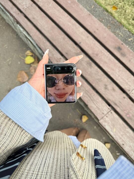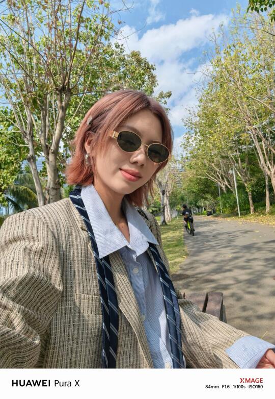 头发越剪越短 虽然很看不习惯 但是莫名的和西装好搭 有种干干净净的感觉😎 天气好好就带着这个华为Pura X小折叠拍照 有种复古感