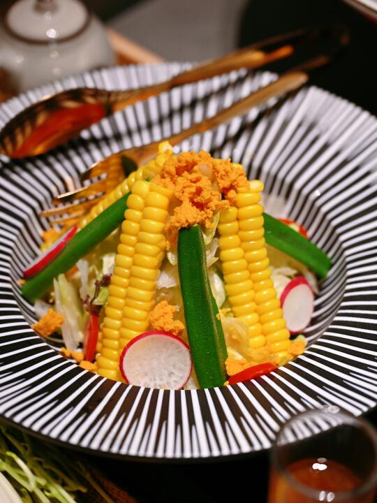海胆火锅我超爱!!!汤汁特别鲜,第一道先煮蔬菜,第二道加入鸡蛋和米饭配上汤汁真的鲜掉眉毛!