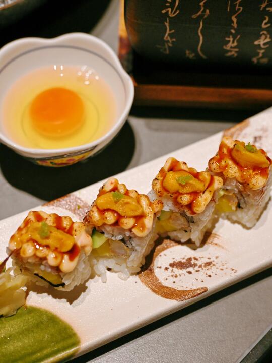 我和家属每次去都是在美团选的套餐,这次团的295双人套餐,包含海胆刺身拼盘+干煎牛舌+海胆蒸蛋+海胆芝士卷+海胆沙拉+海胆火锅(泡饭),性价比超高👍