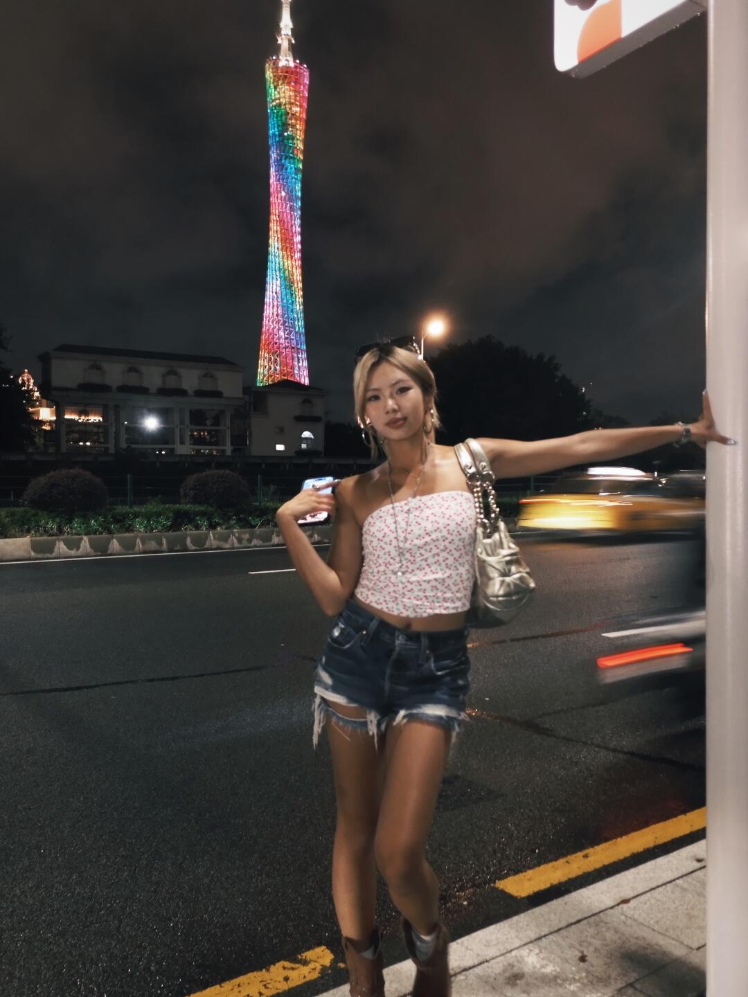 小姐姐也是和广州塔合照了 这小相机真好使 一顿乱拍咔咔咔