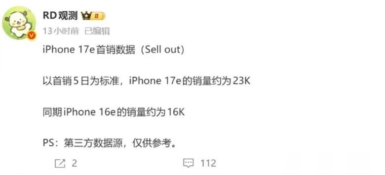 iPhone 17e 的首发情况,如今已经有了大致的模样,它在本月初正式亮相,3月11日开启销售。