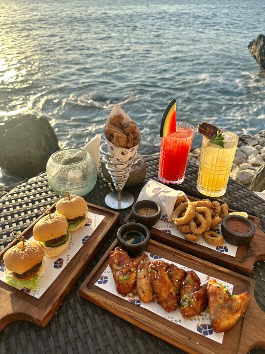 𝗣𝟭𝟱-𝗣𝟭𝟴: rock bar!提前一天预定位置,看金巴兰绝美日落,听着歌很惬意,就是浪太大容易打湿食物!