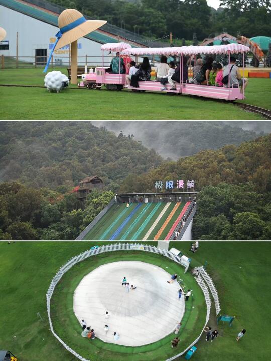 这里有滑草、玻璃滑道、天空步道等高空项目,还有超大的森林大草坪,有小朋友喜欢的蹦蹦床、小火车,还有小兔子、小羊、小鹿、羊驼等小动物可以喂养