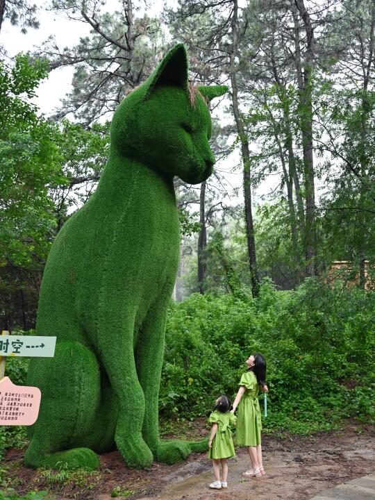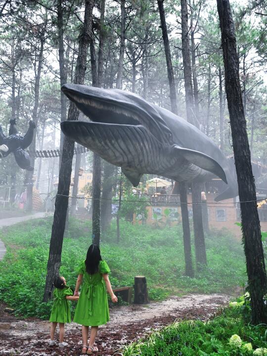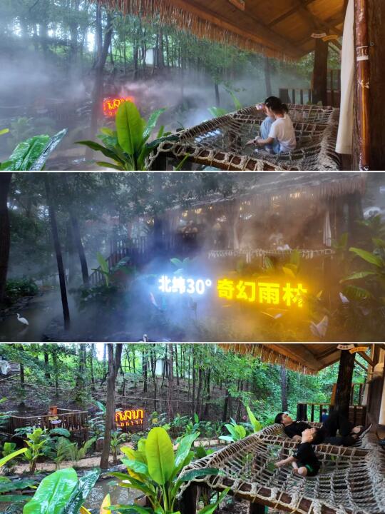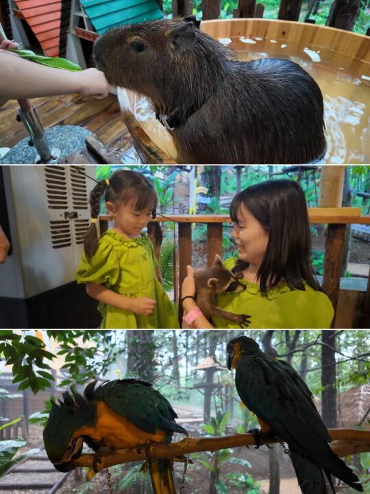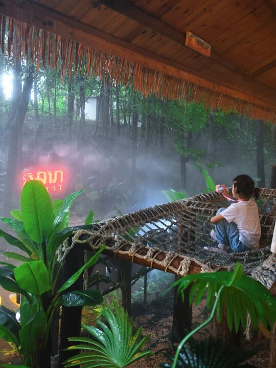 这里就是现实版爱丽丝梦游仙境!!几米高的绿巨猫、超大的飞天鲸鱼、还有卡皮巴拉咖啡屋,一进入就像穿越到了东南亚热带雨林中,雾森、流水瀑布、雨帘,家人们谁懂这种惬意啊~~小朋友还能零距离喂卡皮巴拉和抱小浣熊,没有一个小朋友能拒绝这里