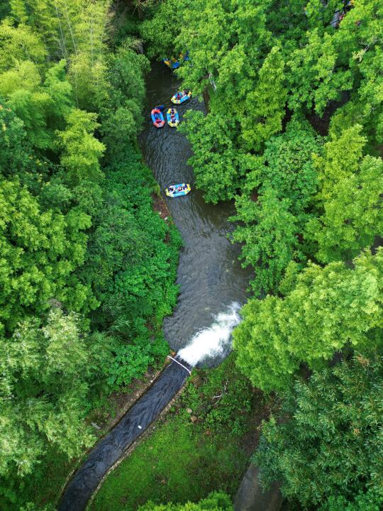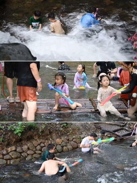 漂流完下来就是丛林溯溪,记得带上娃的玩水枪,她能在这里玩到不肯走!这个时候正是一天中最晒的时候,但这里就是茅山的空调房