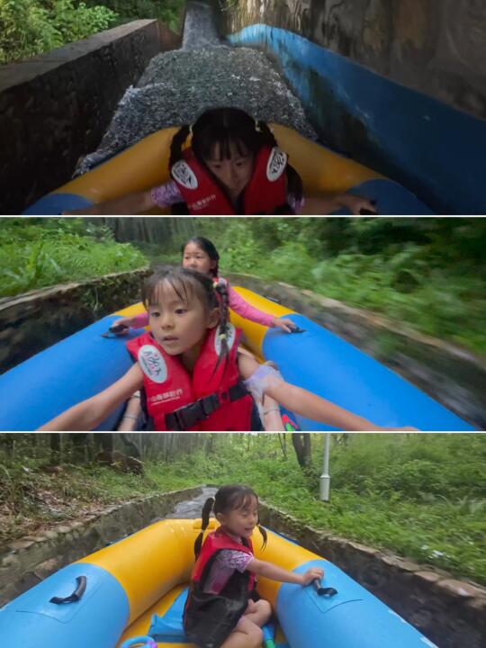 漂流早上9点就开始了,建议上午入园后先冲漂流不用排队!一米以上小朋友就能玩的窝囊版漂流,全程20多分钟,一路被森林覆盖完全不晒,这个夏天来还可以夜漂哦!这次去女儿连漂了两次都嫌没玩够