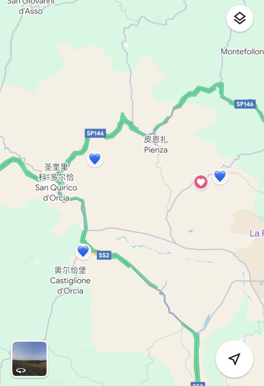 [向右R]绝佳地理位置:从锡耶纳Sienne到民宿路上会途经Agriturismo Baccoleno S型丝柏树打卡地,同时第二个丝柏路Punto Panoramico Cipreces en Zigzag 也在附近,去皮恩扎小镇开车也只要十几分钟,总结一下就是非常方便(地图位置见图10)
