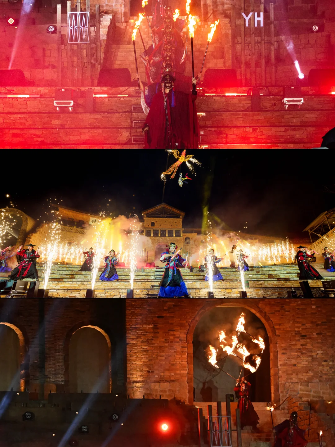 中午到景区停车场→坐接驳车到游客服务中心(2元/人)→先不进景区,先带娃去旁边的竹鼠热浪乐园玩2-3小时→进景区先去坐云上的小火车,到天街站下车→逛小镇吃吃喝喝→坐游船→看各种表演→社火广场看千年窑火颂风华→龙形水秀+龙腾烟花秀
