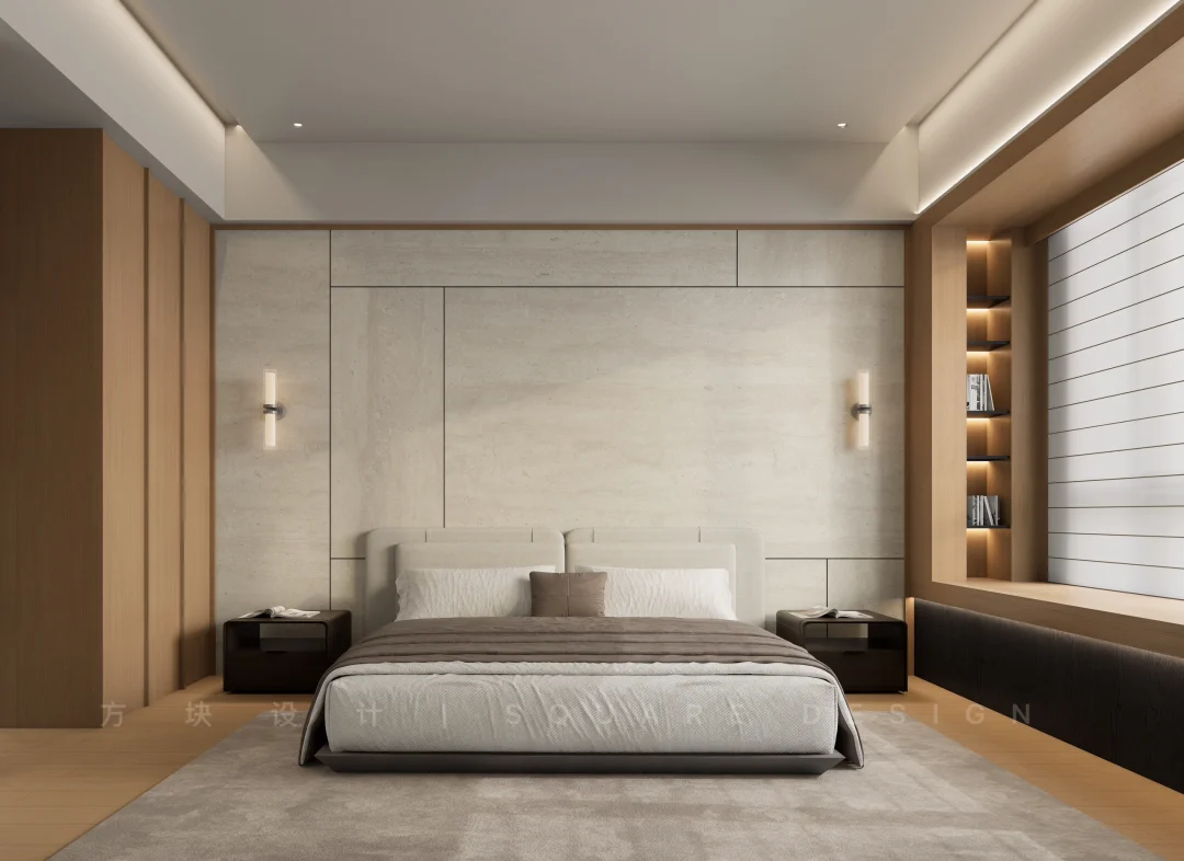 静奢风 主卧装修 温馨的卧室 主卧设计 卧室空间合理利用 方块设计 汕头独立设计师