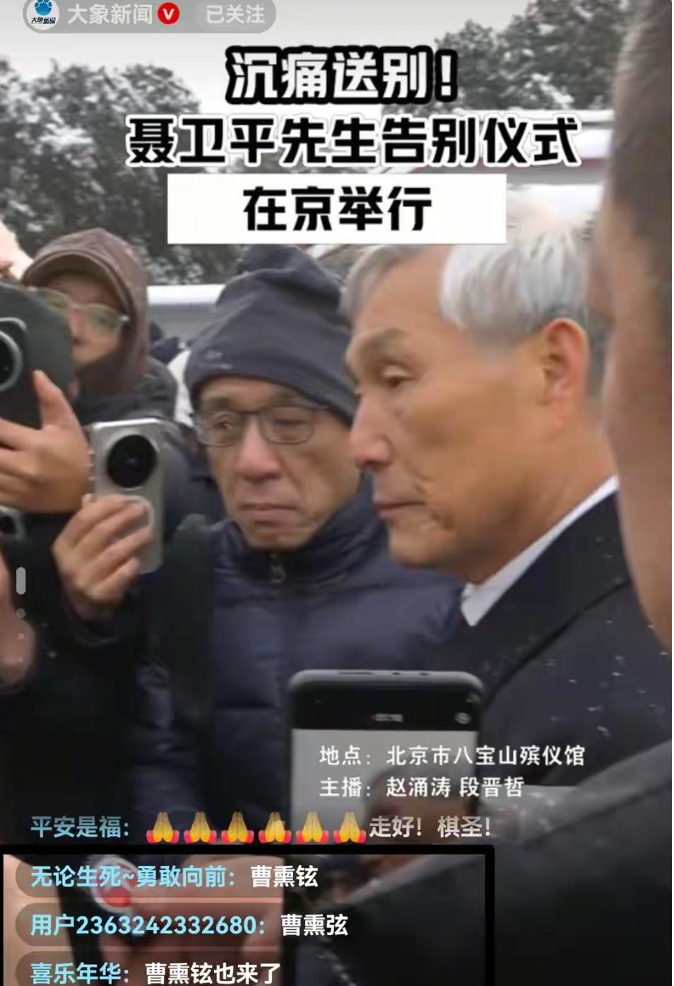 1月18日,棋圣聂卫平的葬礼在北京八宝山举行,葬礼现场除了他的家人,还有很多围棋界的名将和自发送别的群众。