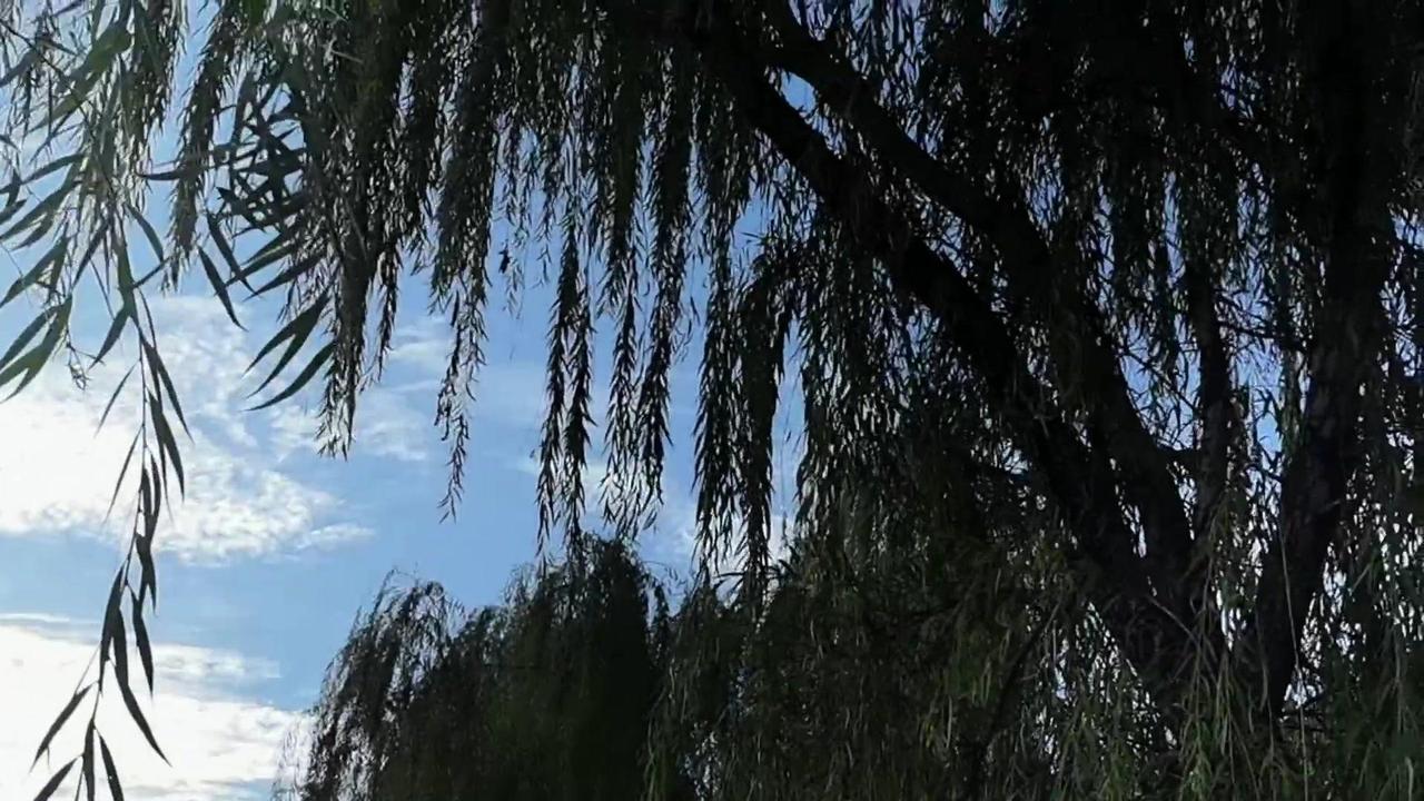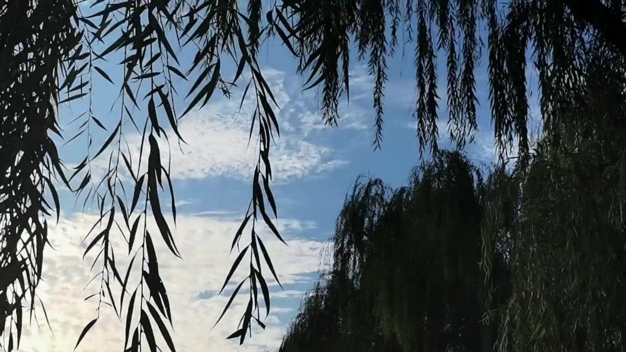 清晨薄雾散,阳光洒在湖面,波光粼粼像碎钻。湖边的柳树垂到水面,风吹过时,柳枝轻拂,感觉心都跟着静下来了。